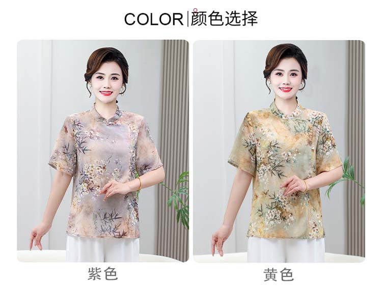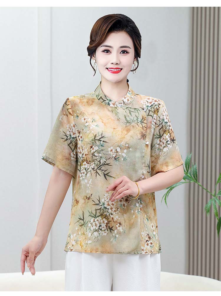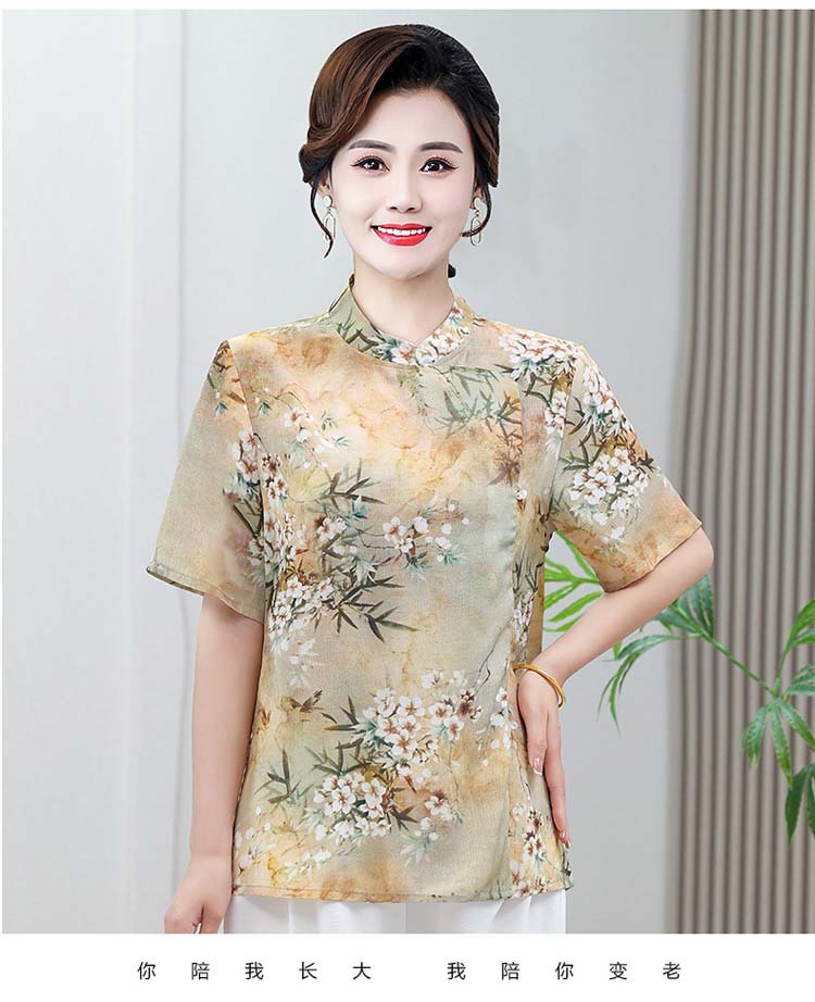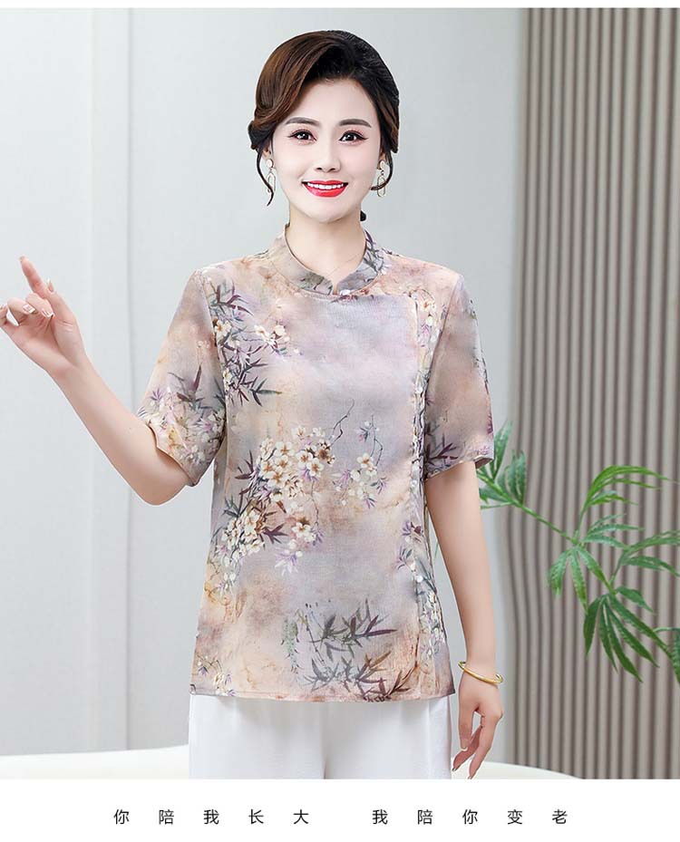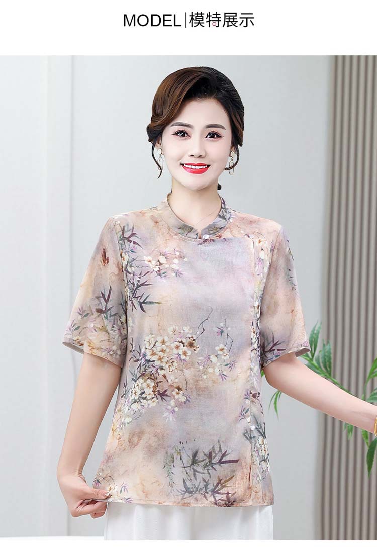 妈妈夏装时尚短袖T恤2024新款中老年妇女洋气新中式国风减龄上衣