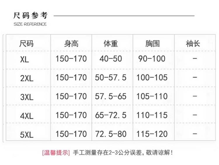 | 5xl (recommended 72.50 kg-77.50 kg(5XL(建议145-155斤)) | USD $15.08 | 500 piece available |
