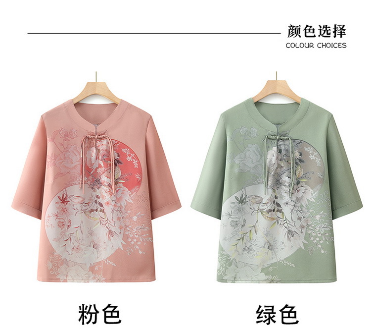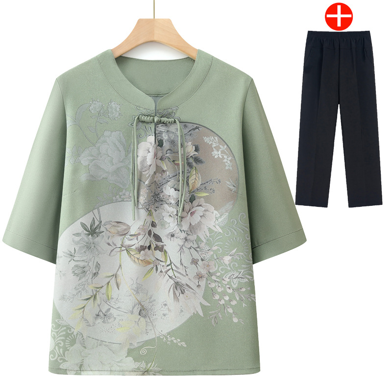洋气老年人夏装女奶奶短袖T恤妈妈夏季套装新中式国风老太太上衣