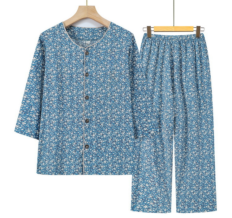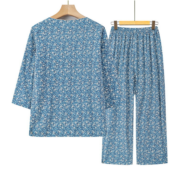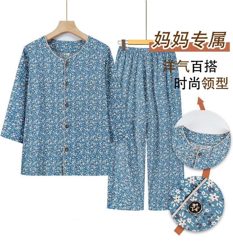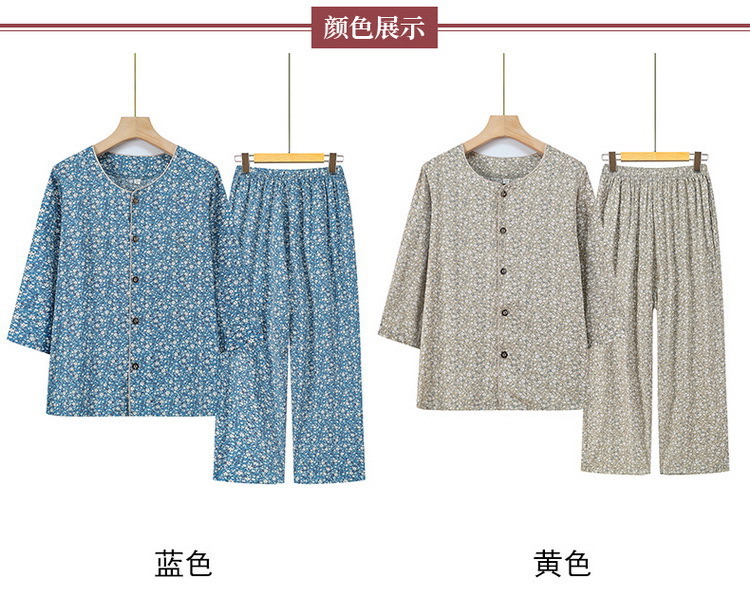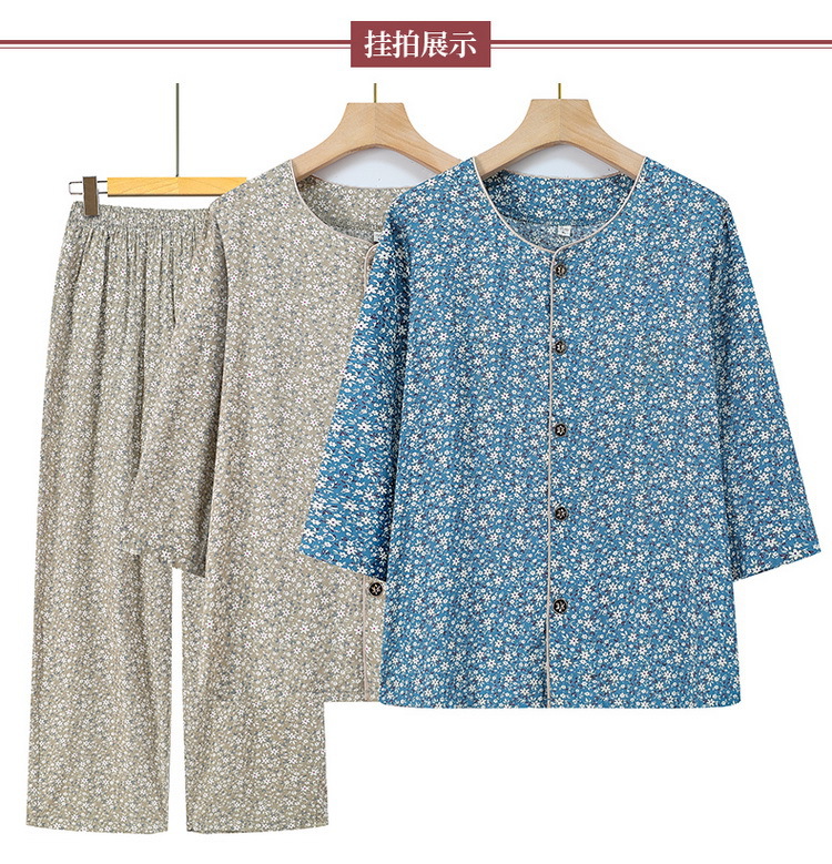 奶奶夏装纯棉套装新款老人开衫睡衣女中老年妈妈七分袖夏季两件套