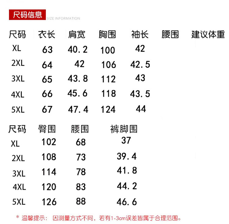 | 5xl (recommended 70.00 kg-75.00 kg(5XL(建议140-150斤)) | USD $0.0 | 492 set available |