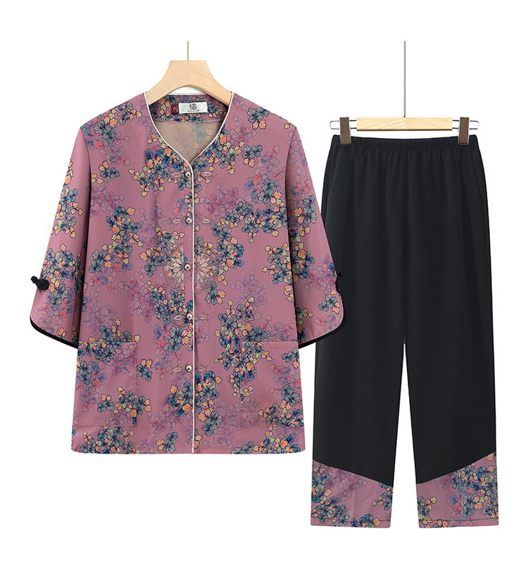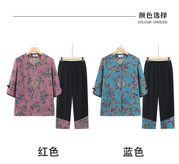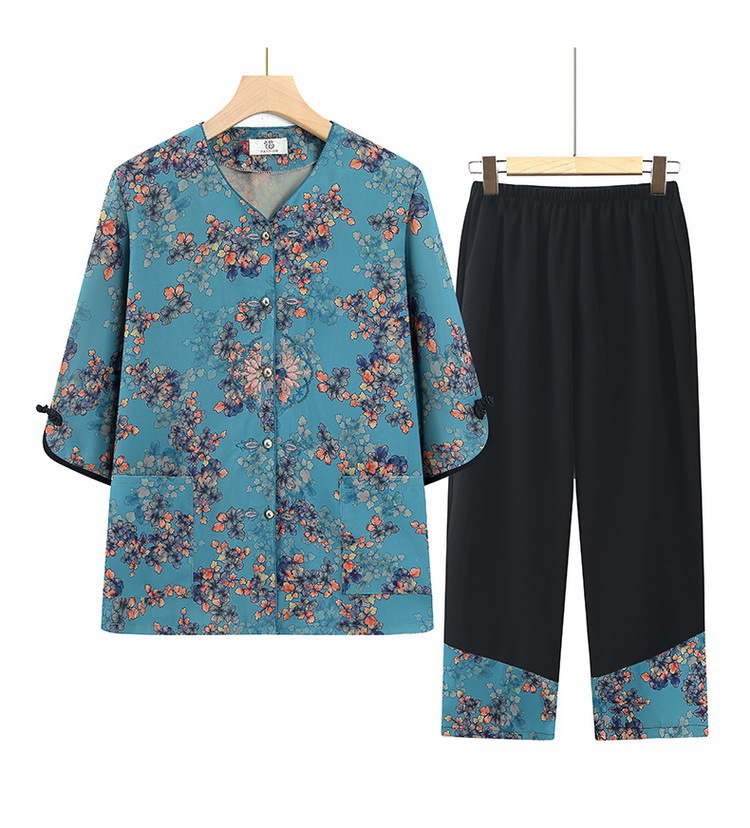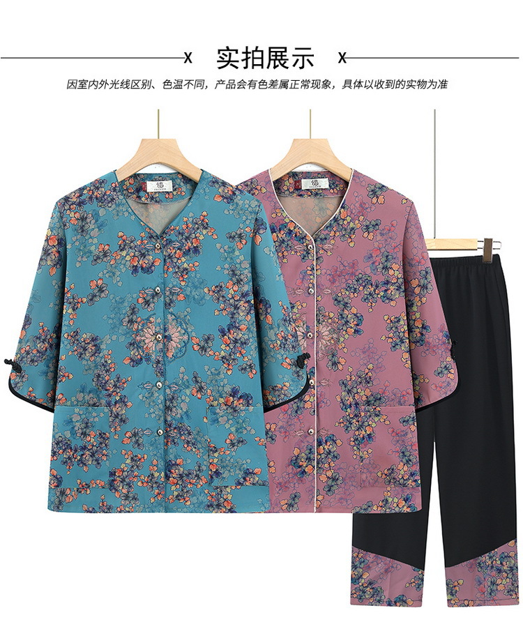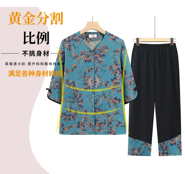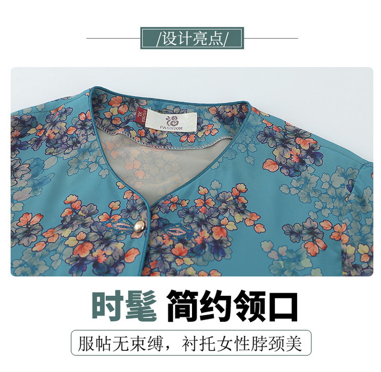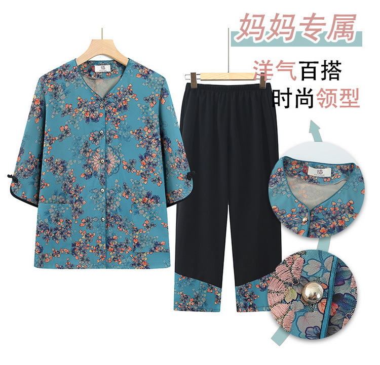 中老年人妈妈夏装七分袖衬衣老太太夏季衬衫奶奶洋气开衫两件套装