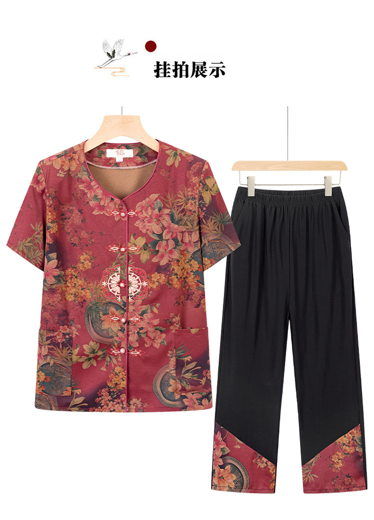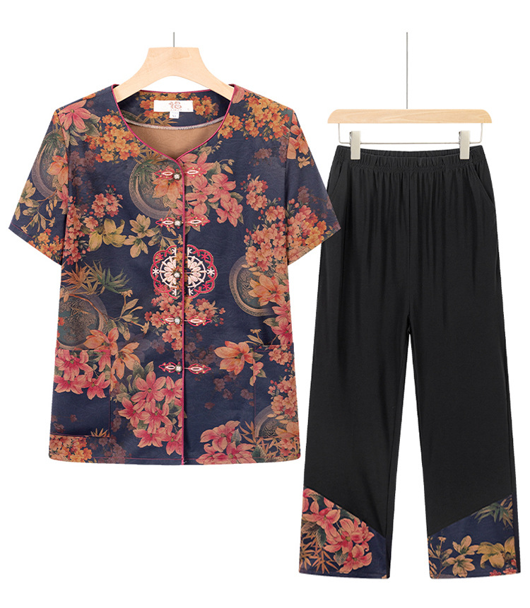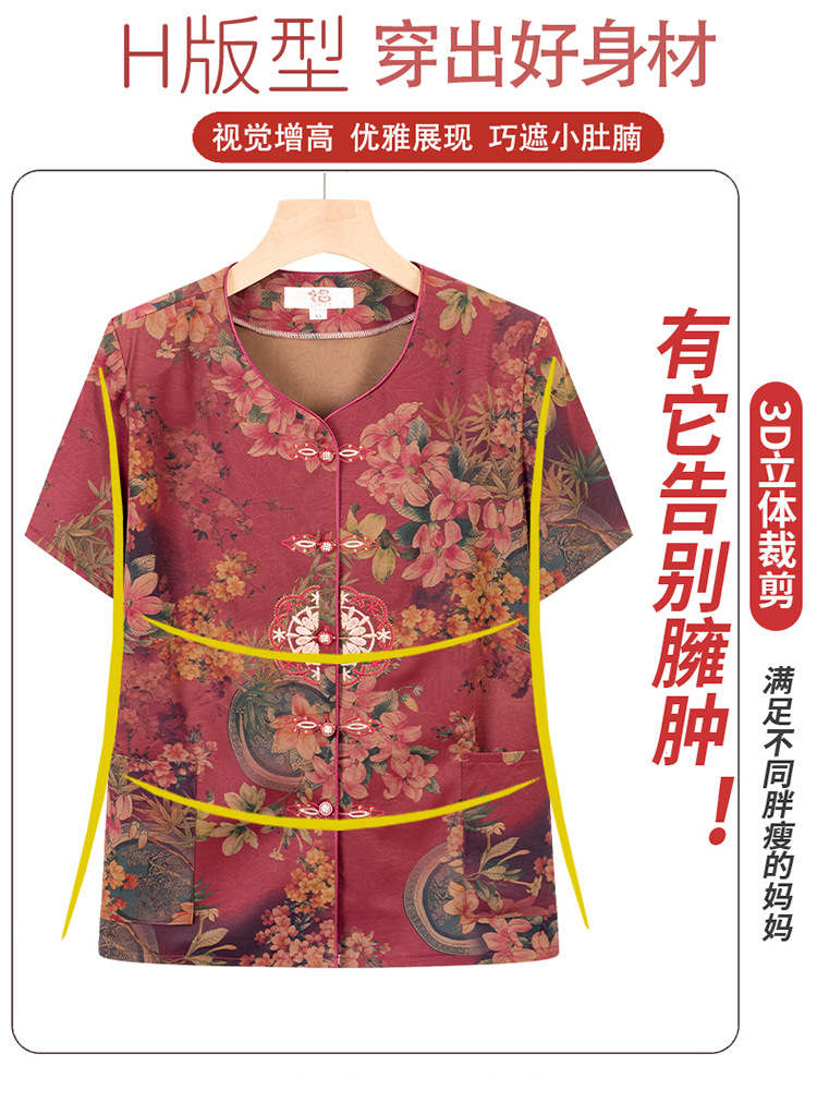 中老年人夏装两件套女妈妈短袖唐装衬衫老太太奶奶装夏季洋气套装