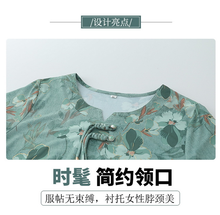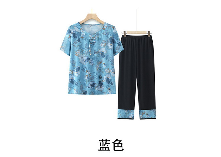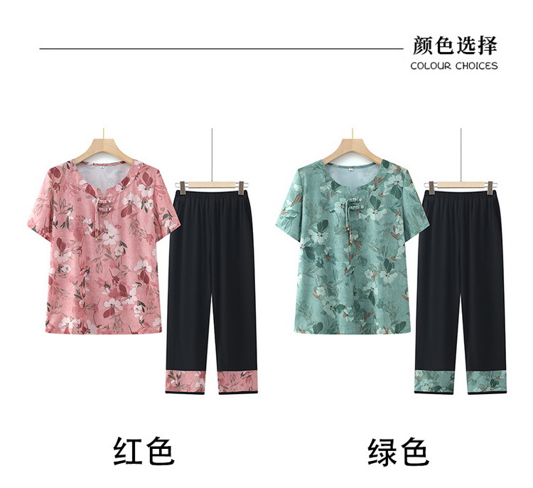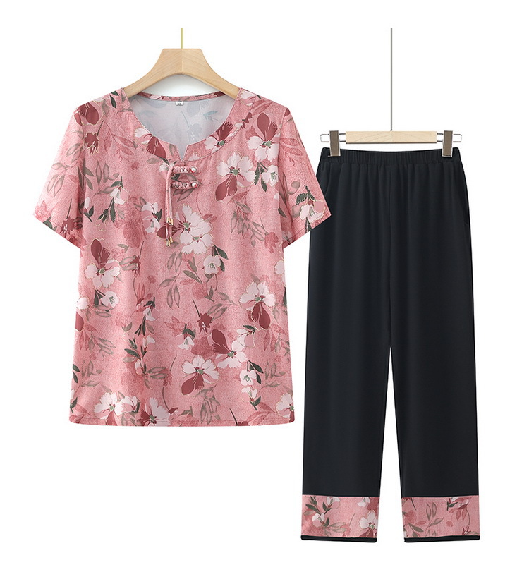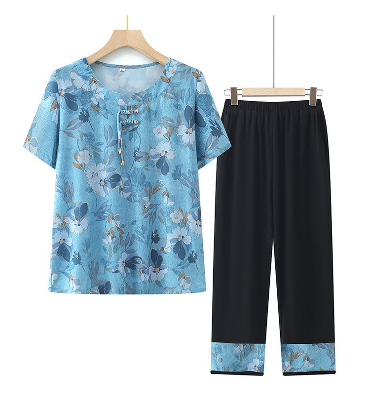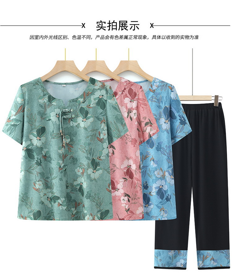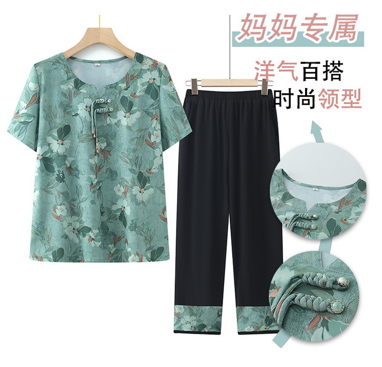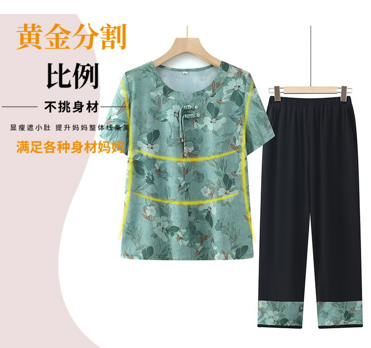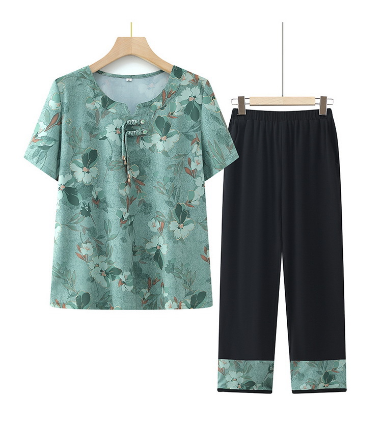 奶奶短袖T恤套装时尚国风小衫夏季新款妈妈装宽松气质上衣两件套