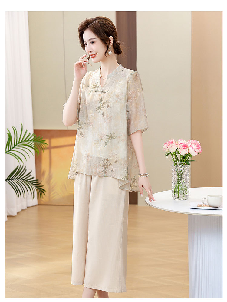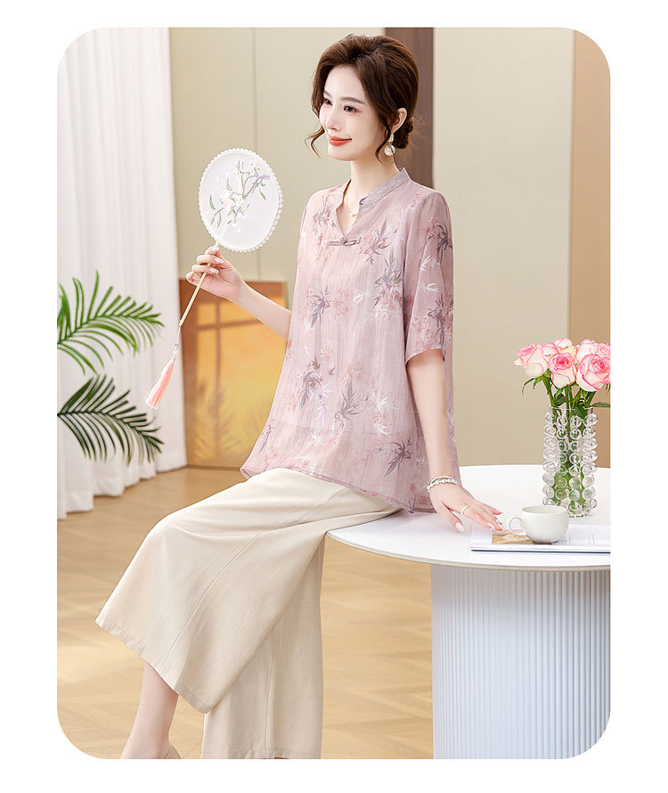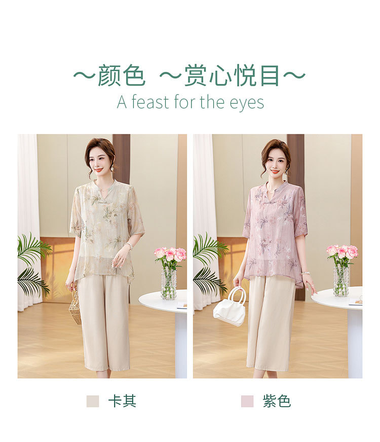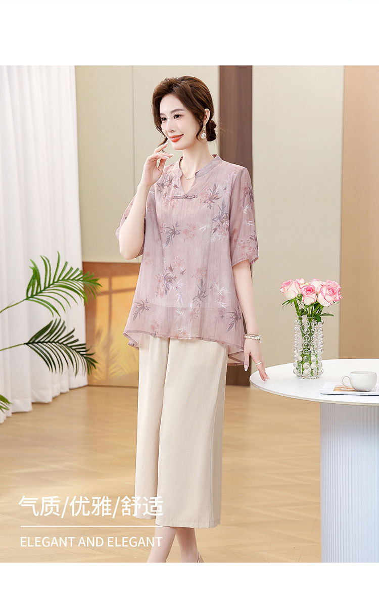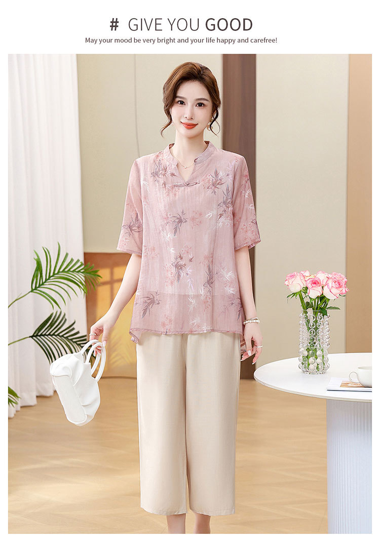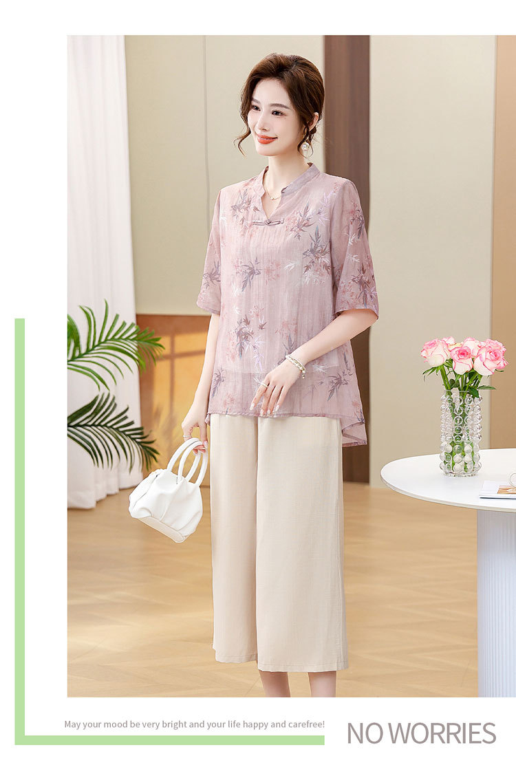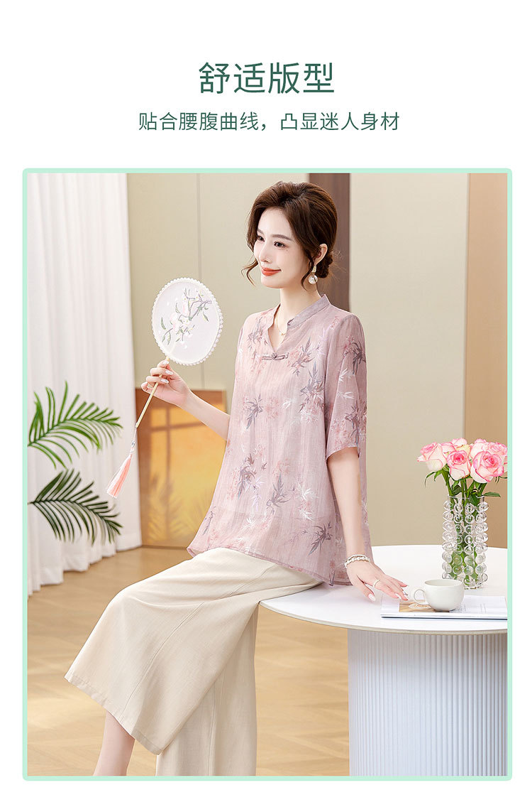 妈妈夏装2024新款短袖小衫洋气上衣中老年女t恤新中式母亲节衣服