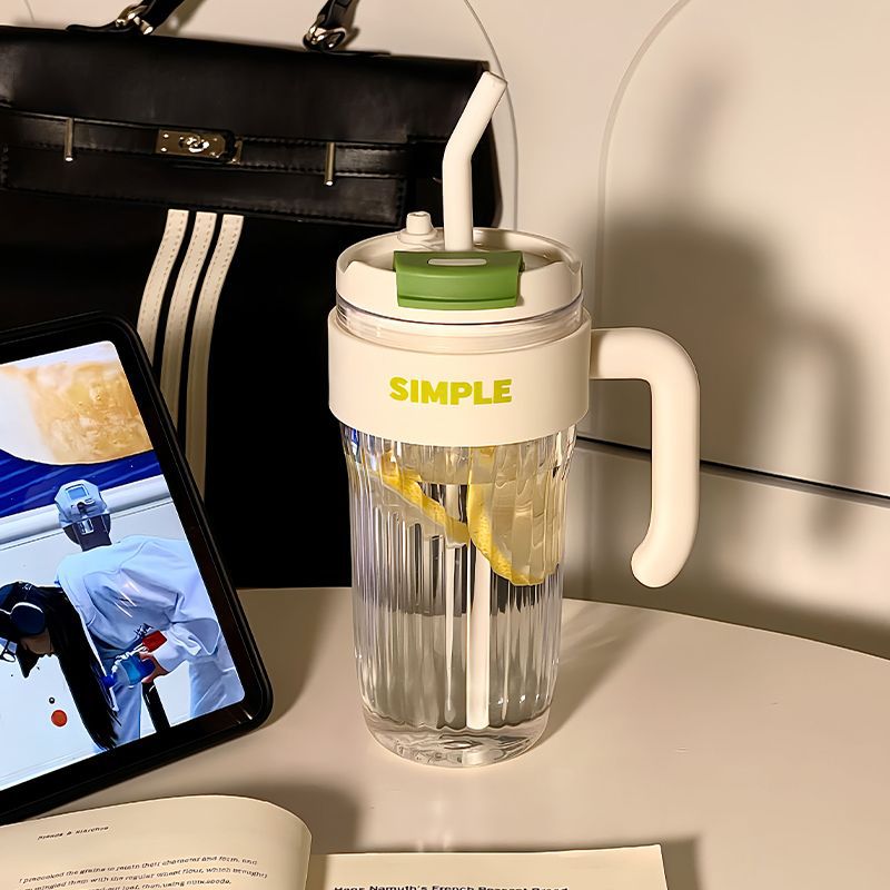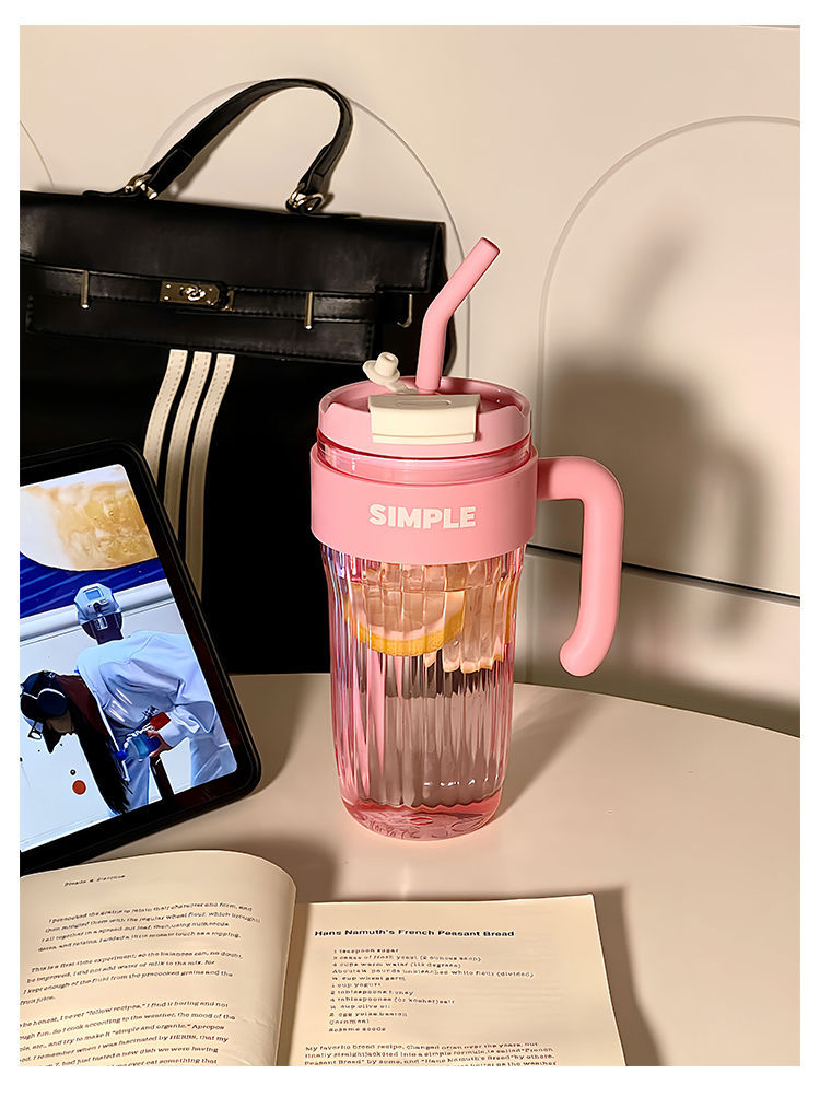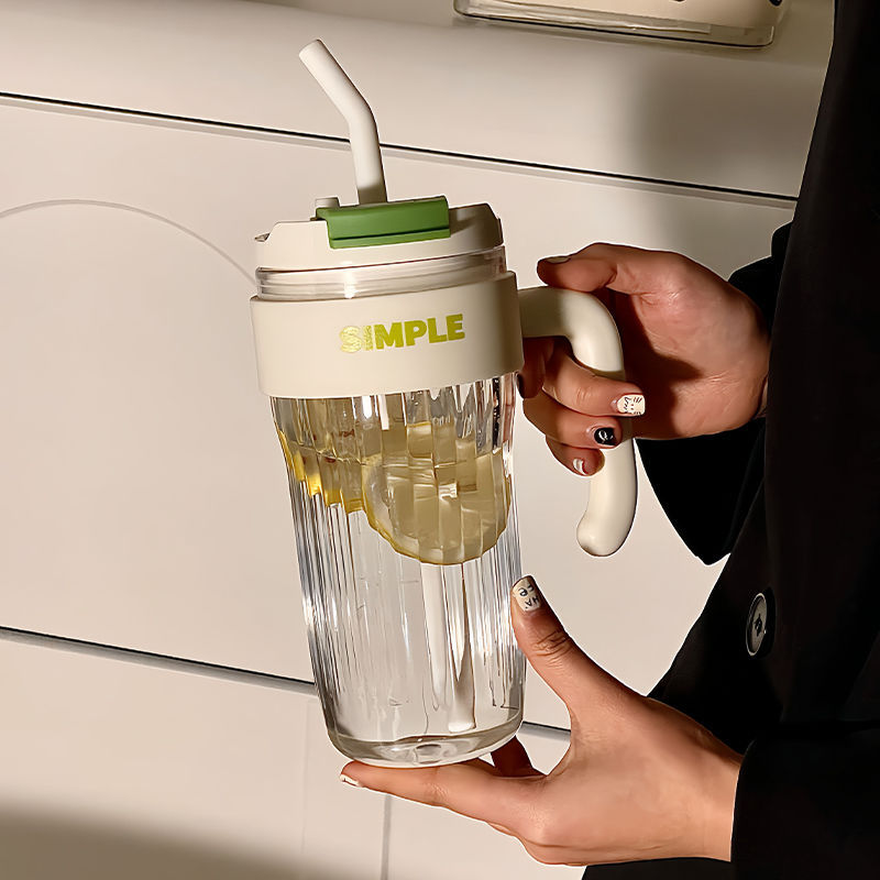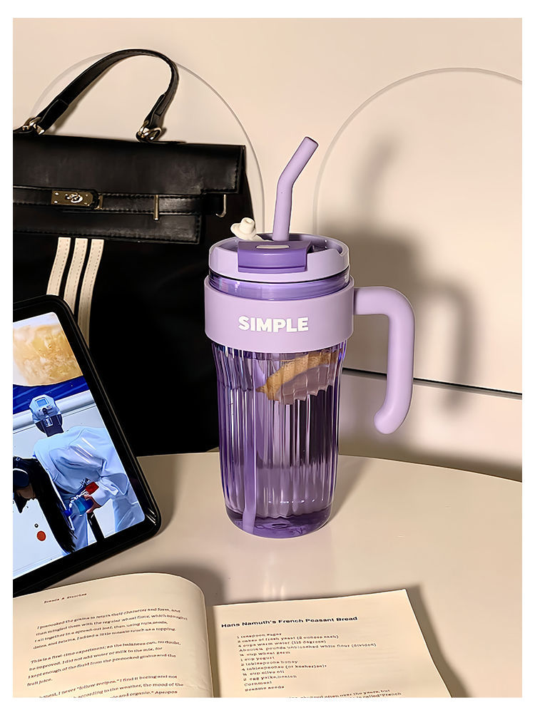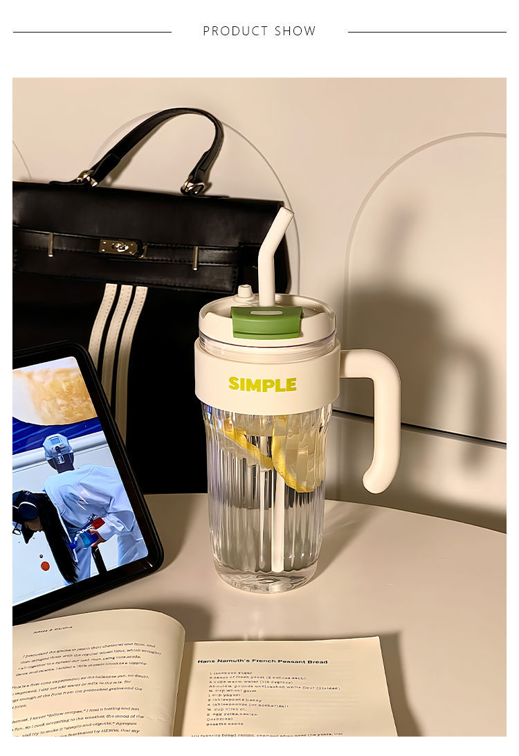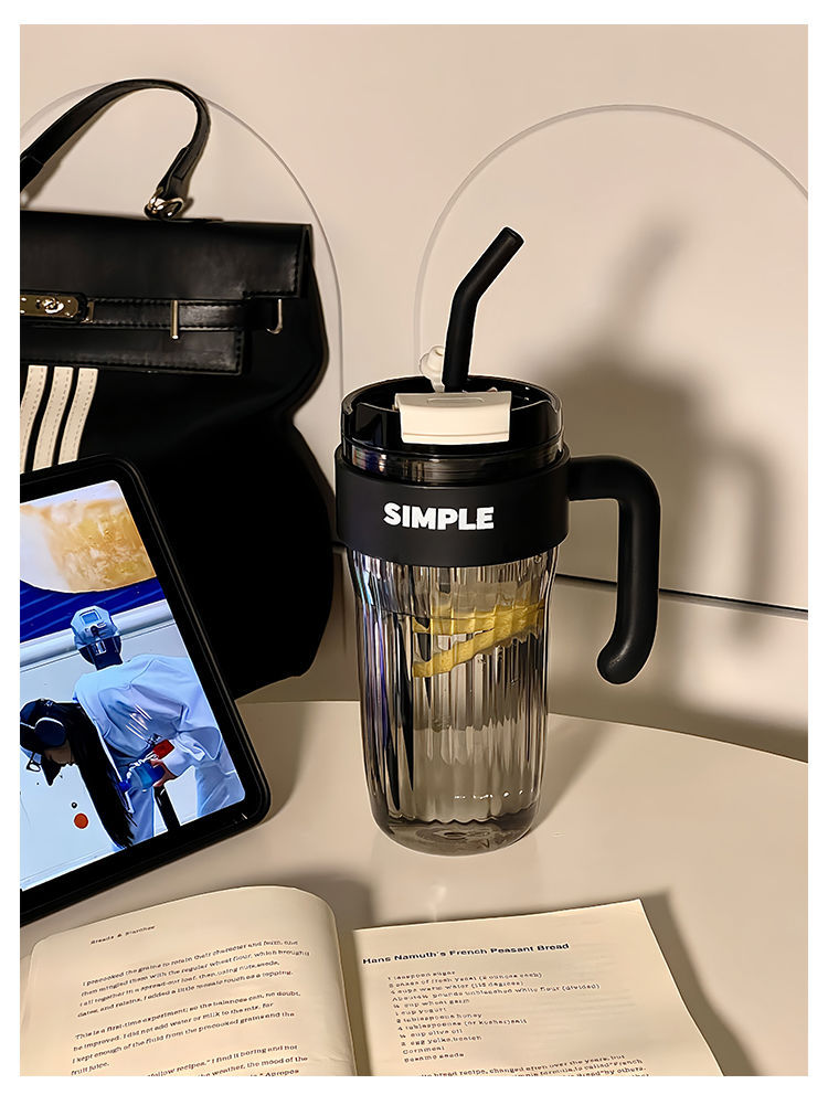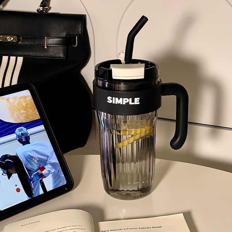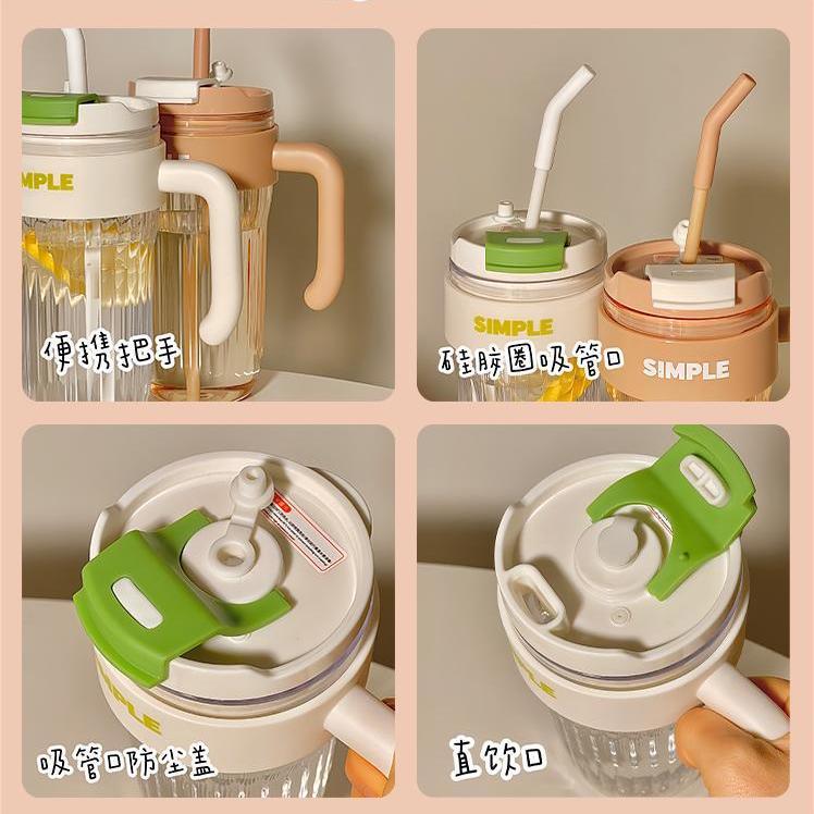 2024新款大容量双饮吸管咖啡杯女生办公室便携带手柄高颜值杯子