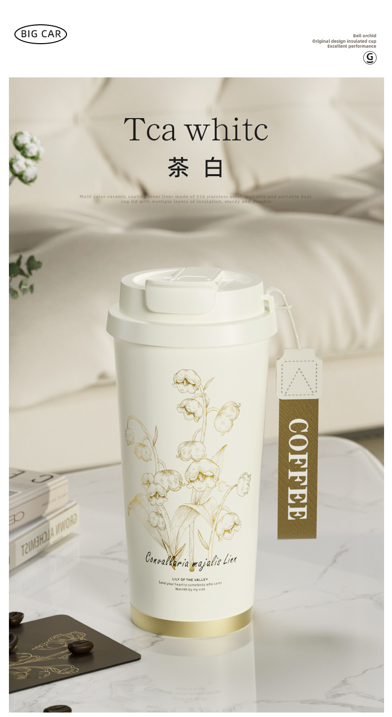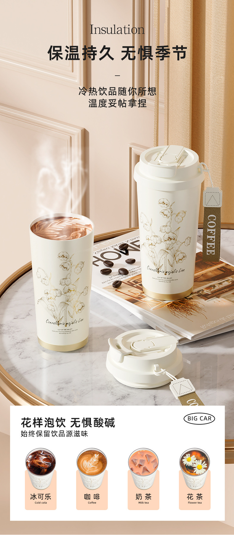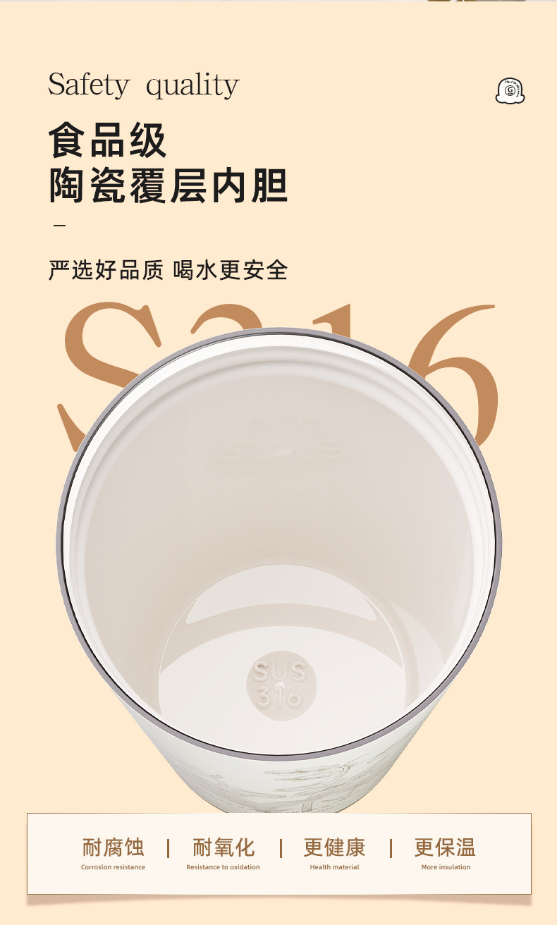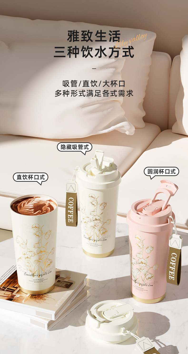 316不锈钢保温杯双饮咖啡杯车载陶瓷无缝内胆吸管杯简约 礼品杯