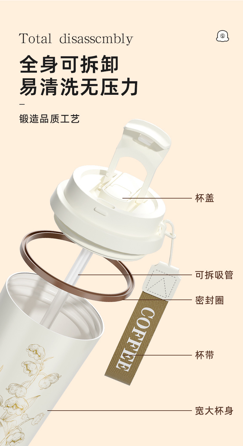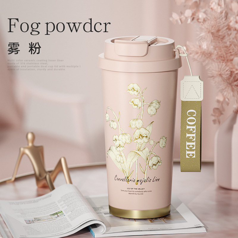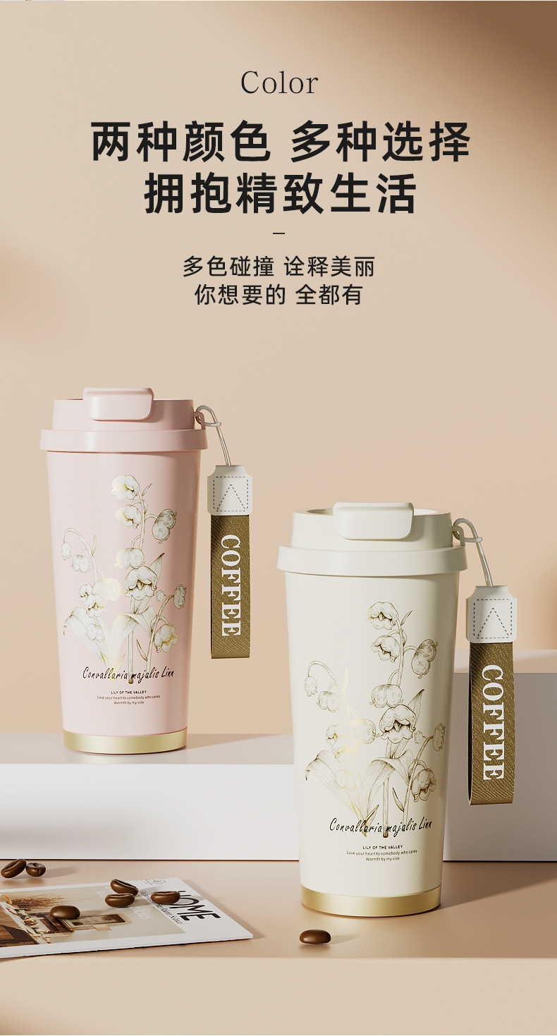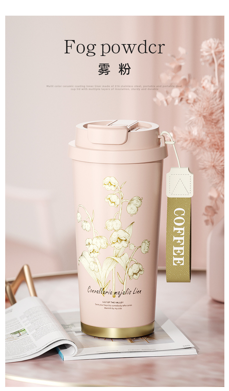 316不锈钢保温杯双饮咖啡杯车载陶瓷无缝内胆吸管杯简约 礼品杯