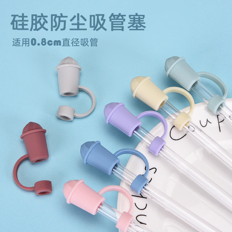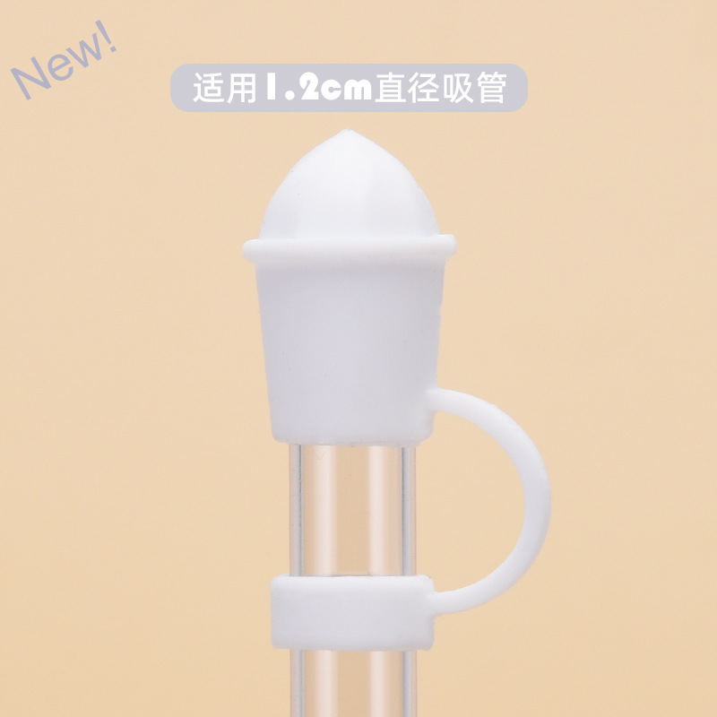 2024跨境新款硅胶吸管防尘塞冰激凌造型可吸珍珠奶茶食品级吸管套