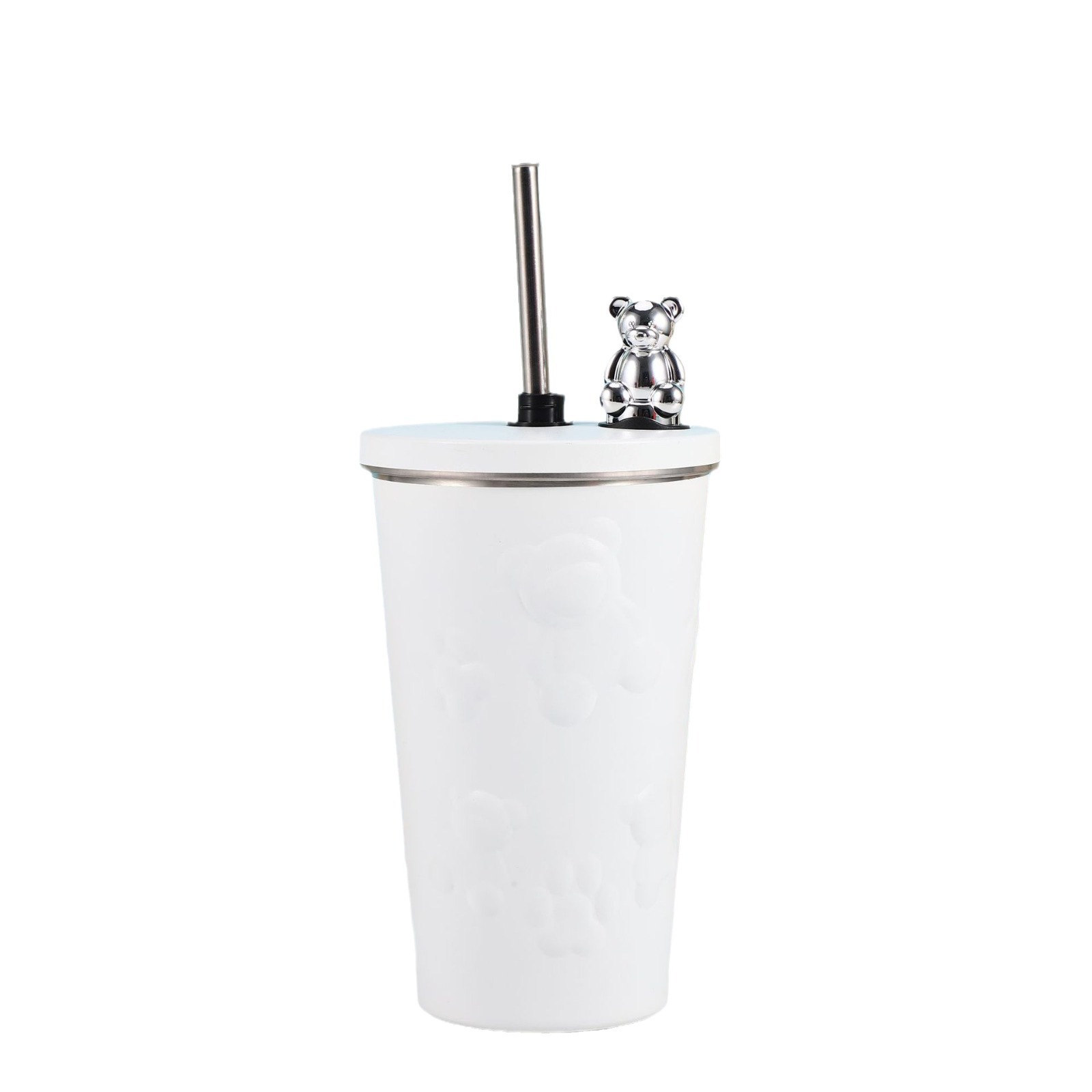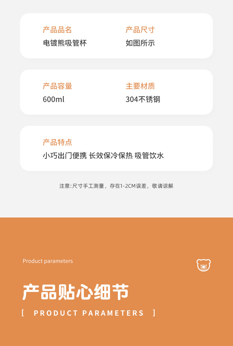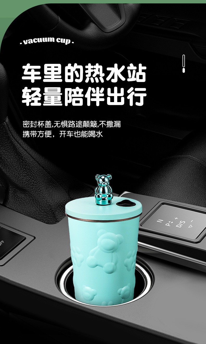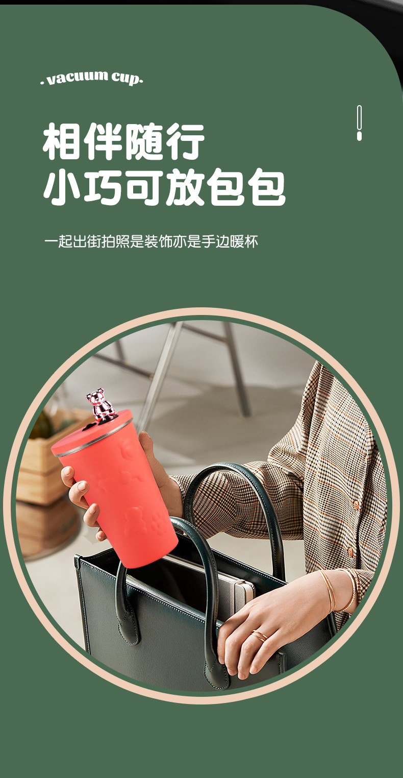 跨境304不锈钢保温杯高颜值卡通电镀熊咖啡吸管杯大容量随手杯