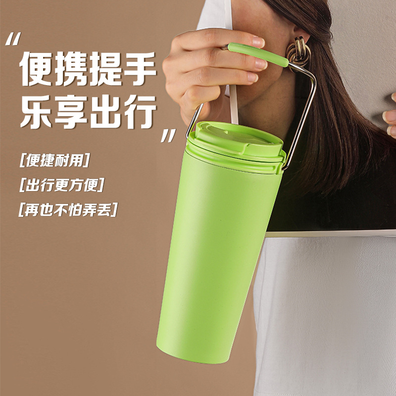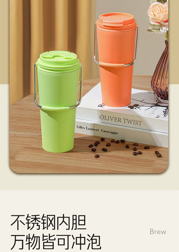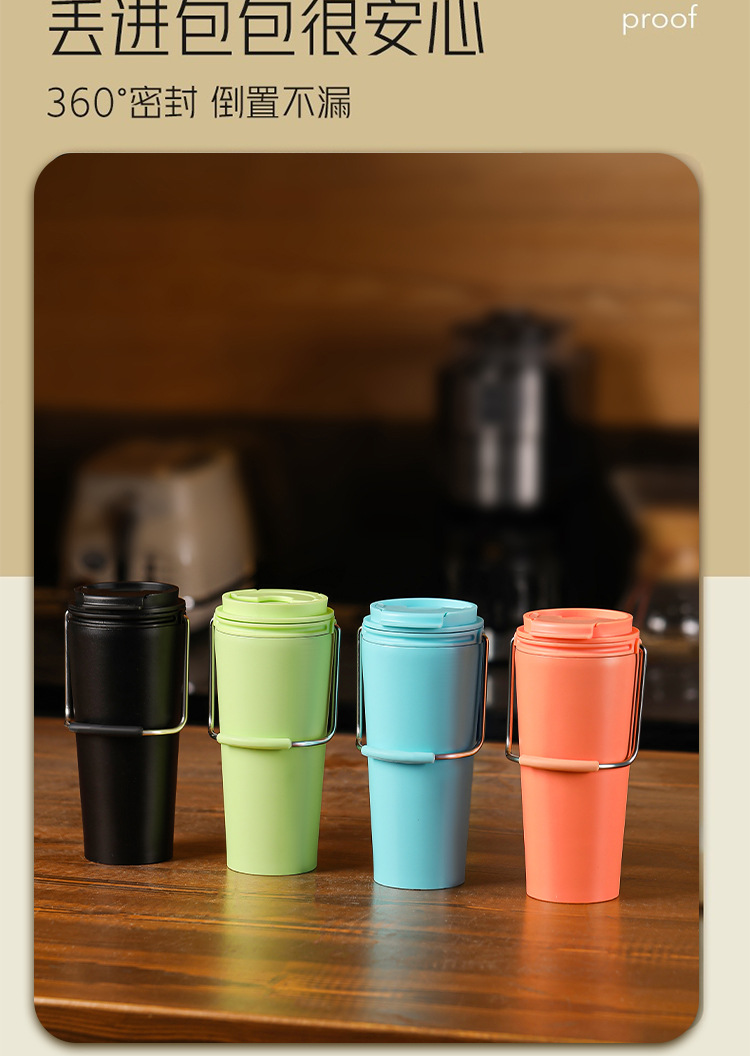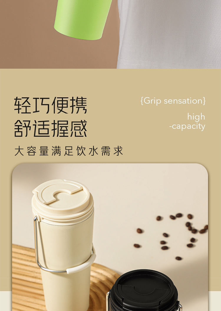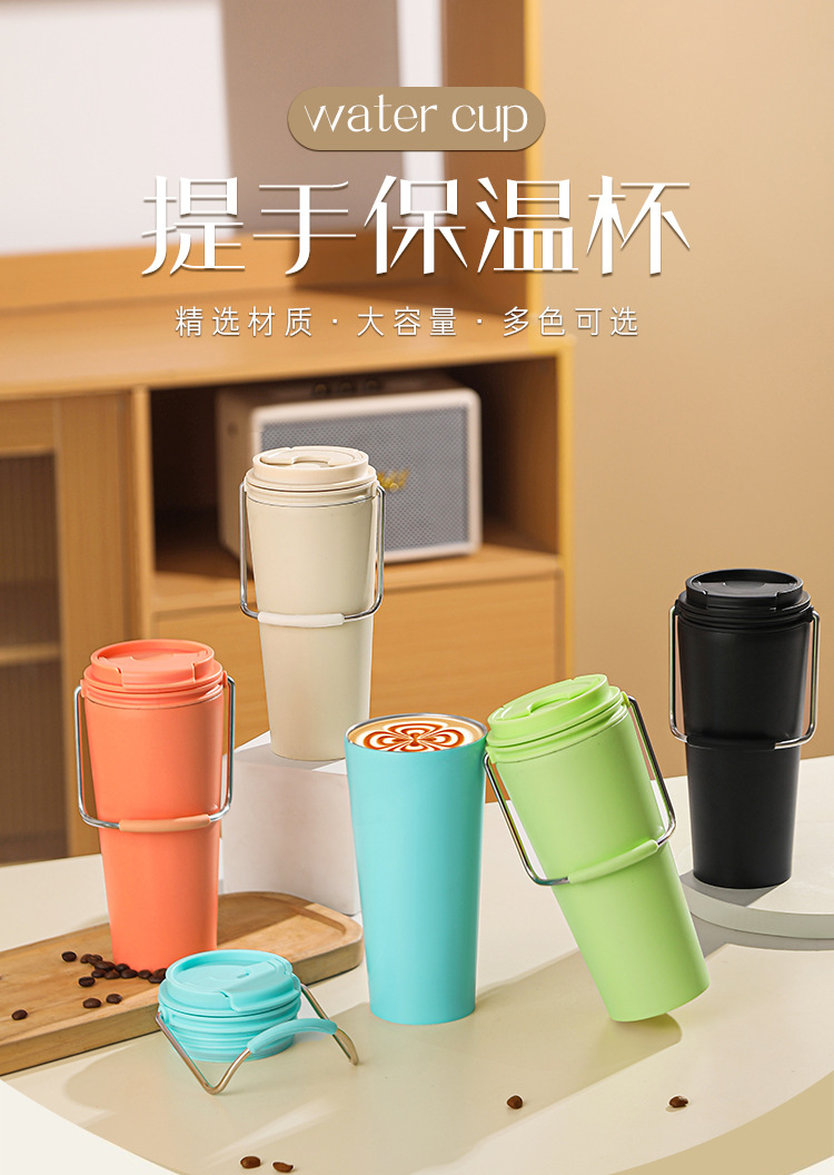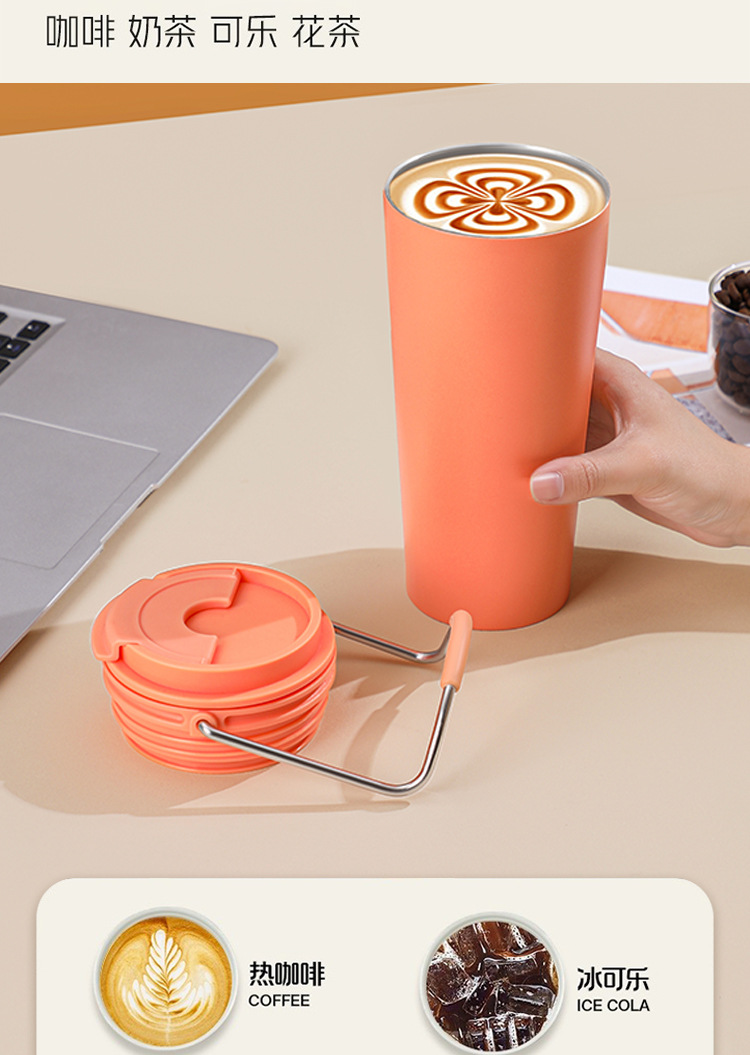 水杯高颜值跨境不锈钢保温杯提手户外便携式手提咖啡杯