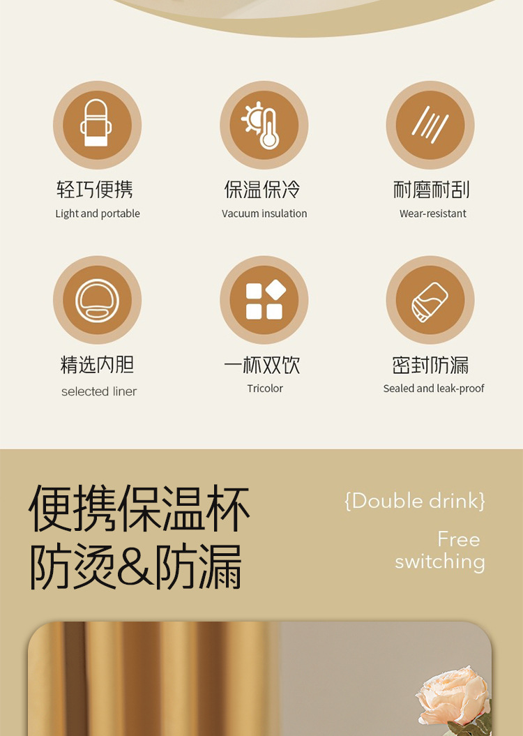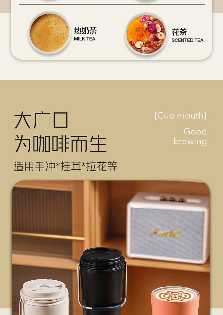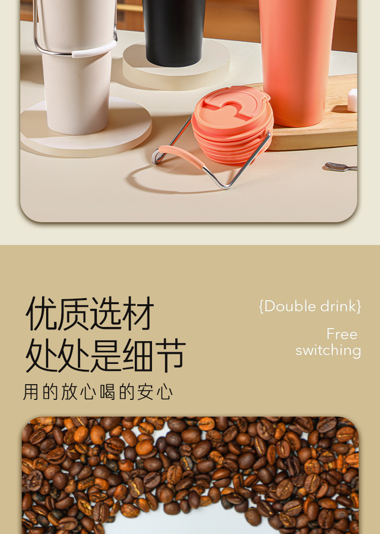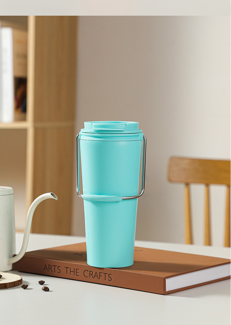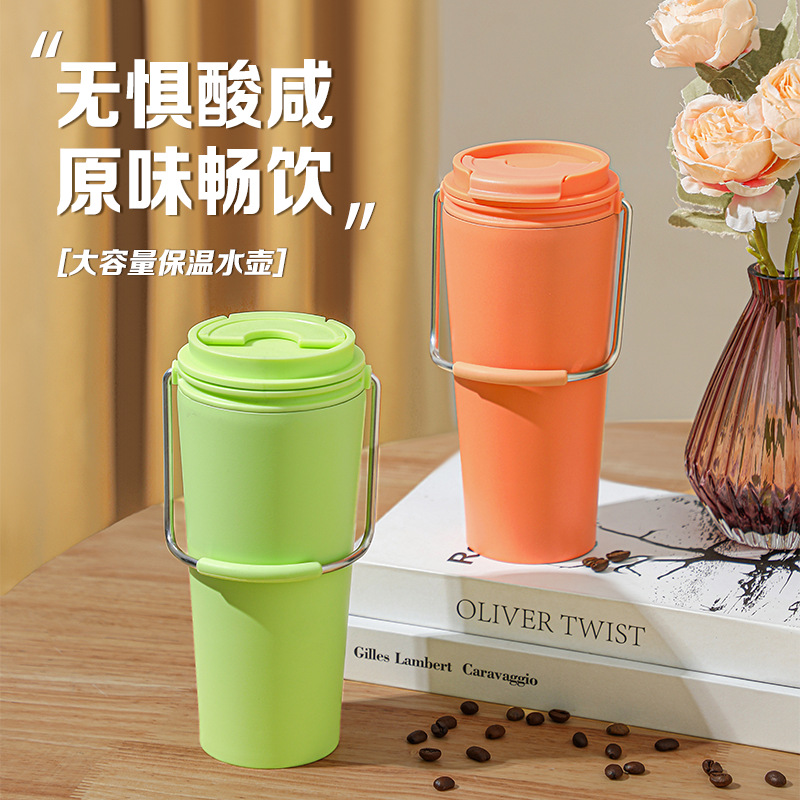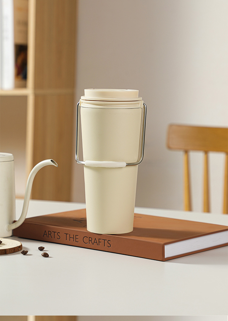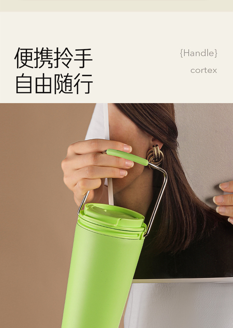 水杯高颜值跨境不锈钢保温杯提手户外便携式手提咖啡杯