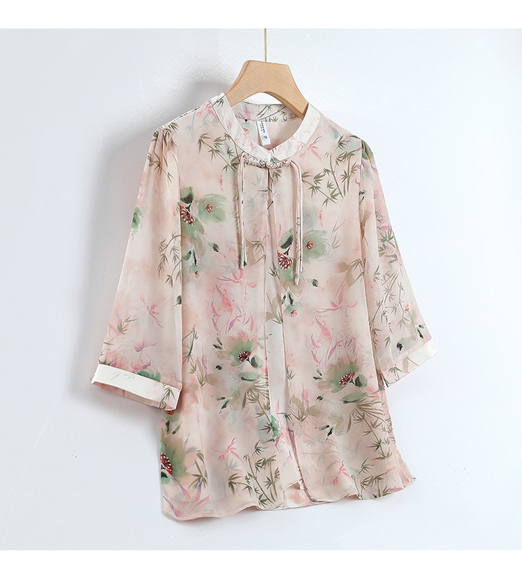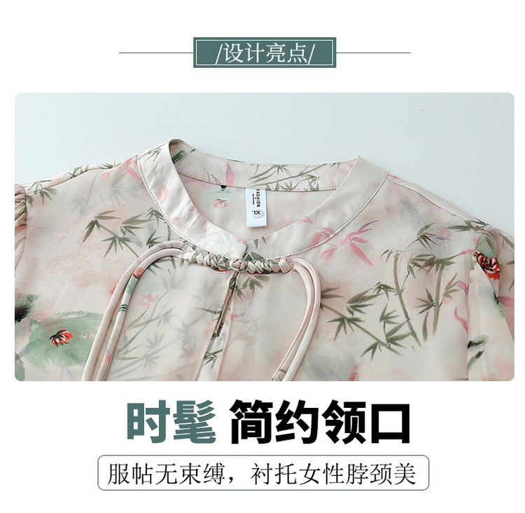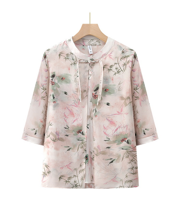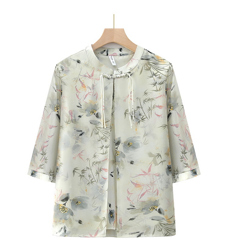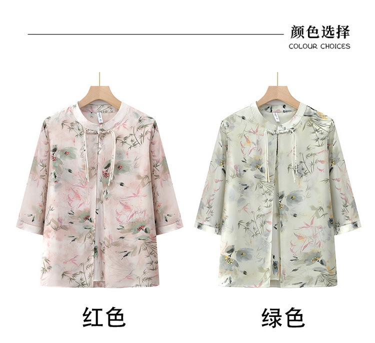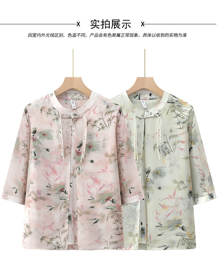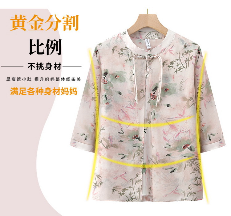 中老年人国风洋气上衣女奶奶假两件T恤妈妈装宽松七分袖夏季衬衫