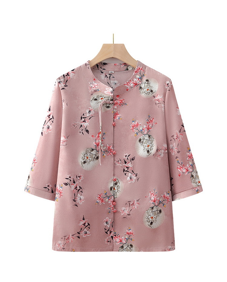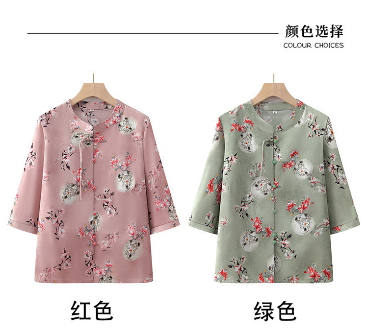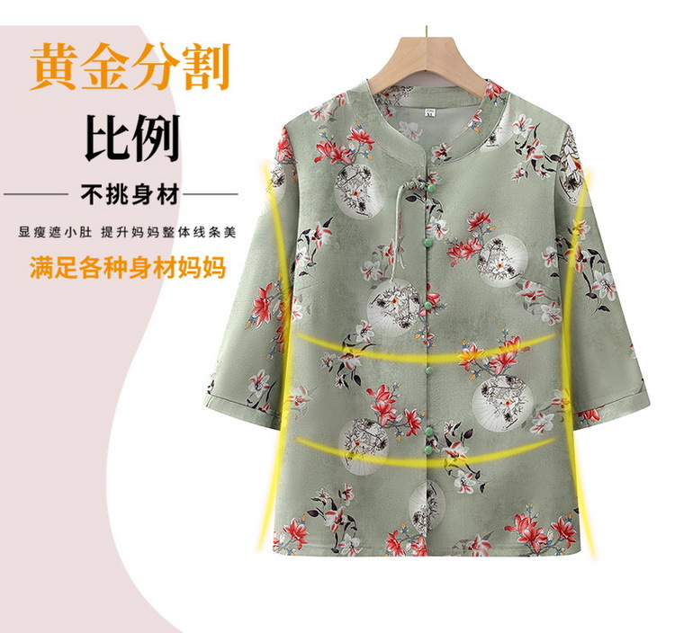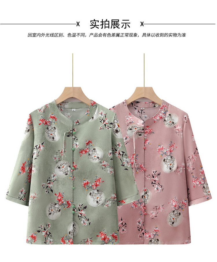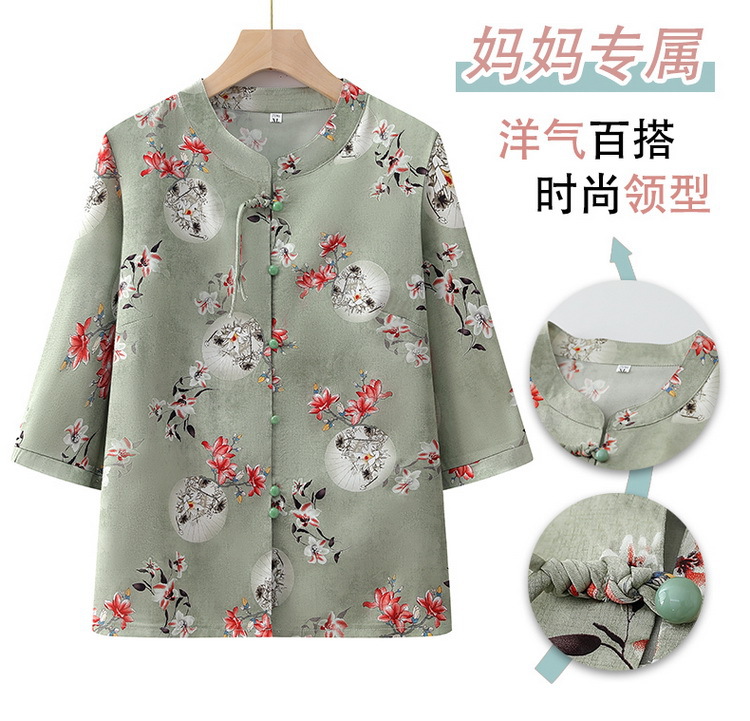 中老年人衬衫女奶奶夏装中袖上衣妈妈民族国风衬衣老太太唐装衣服