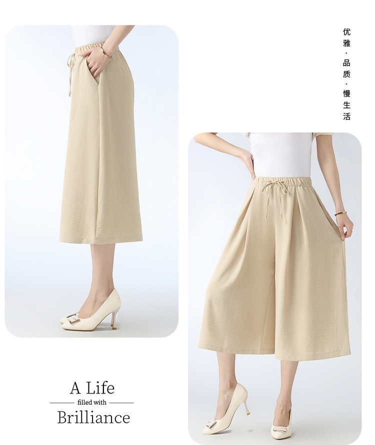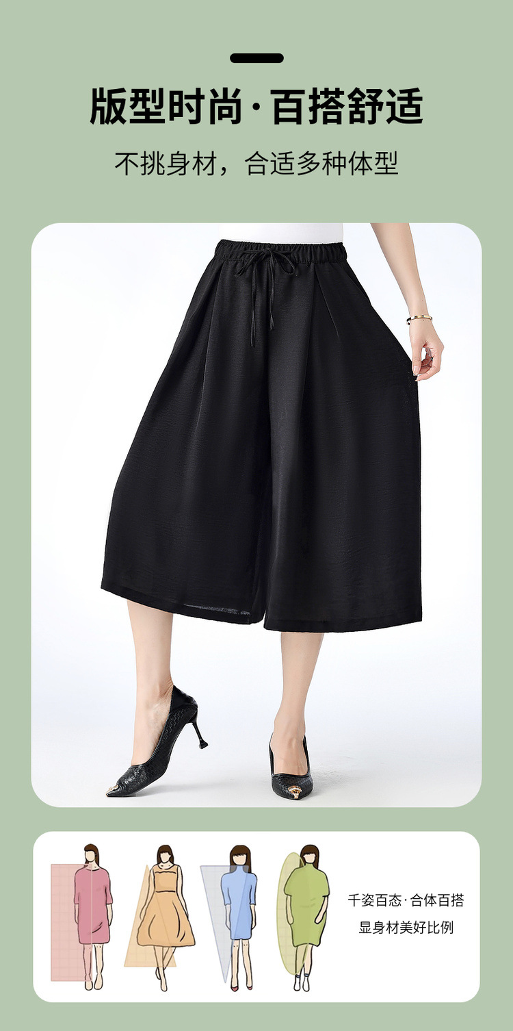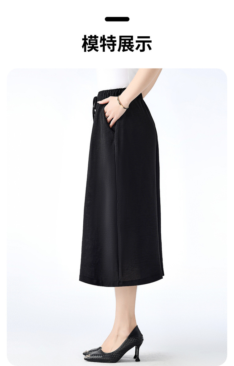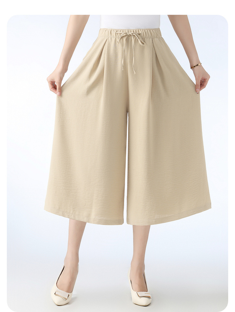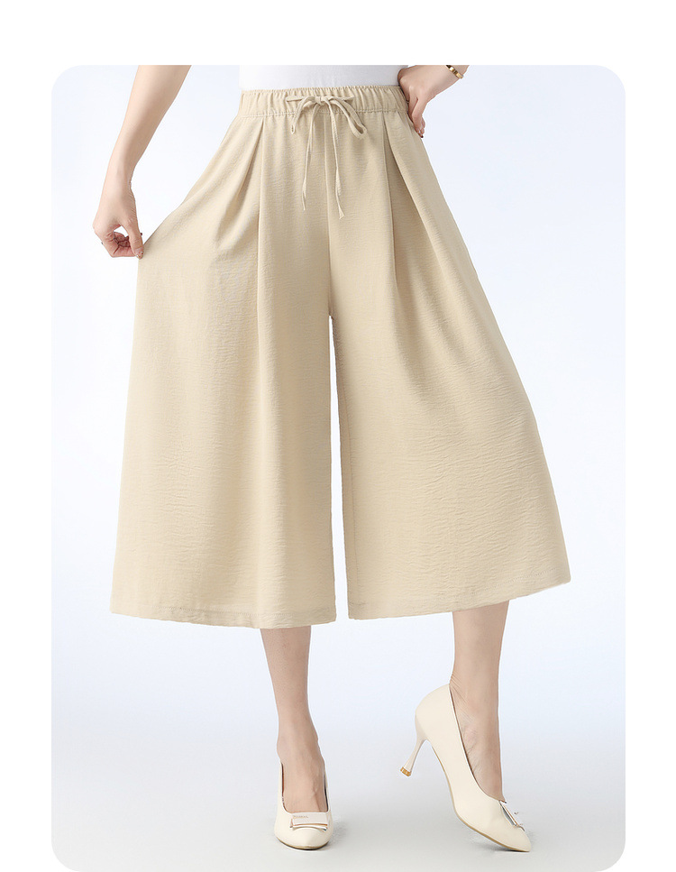 薄款冰丝麻料阔腿裤裙女士高腰夏季洋气中年妈妈宽松七分大脚裙裤