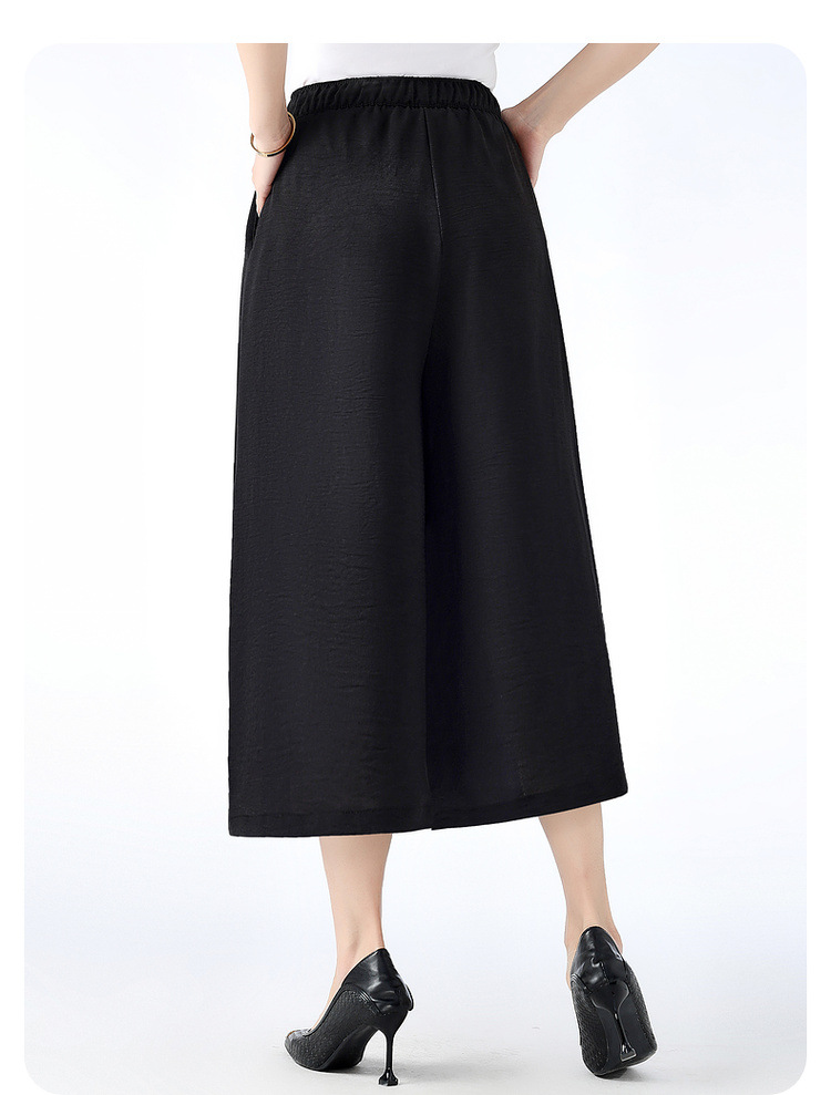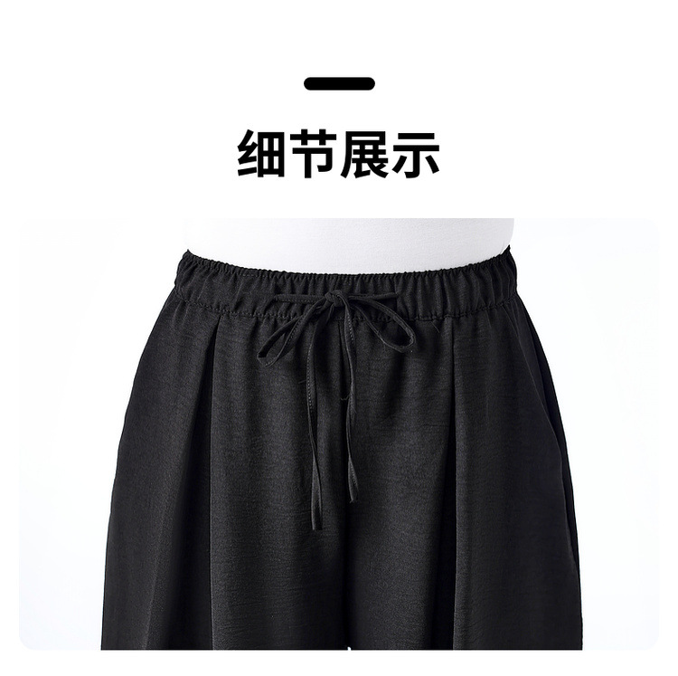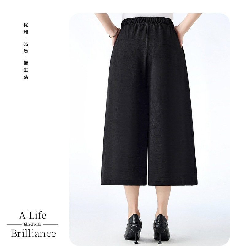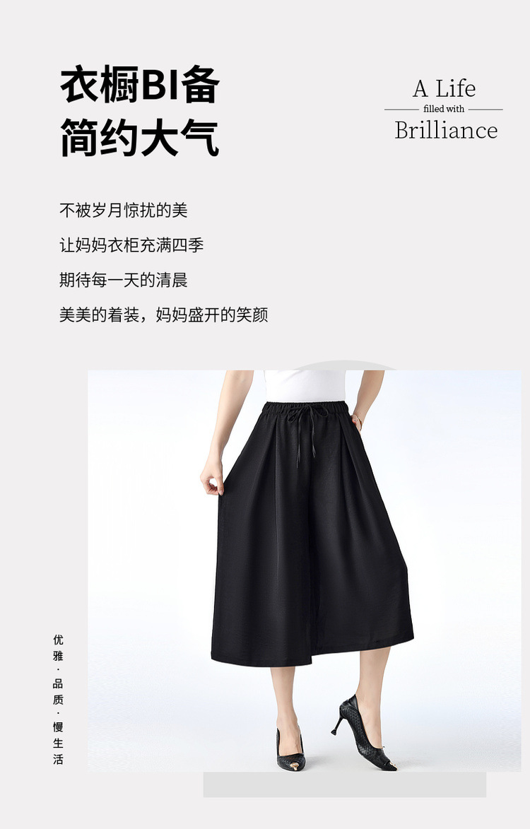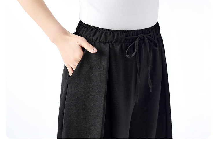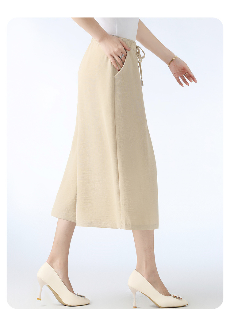 薄款冰丝麻料阔腿裤裙女士高腰夏季洋气中年妈妈宽松七分大脚裙裤