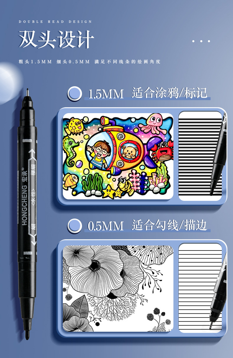 小双头记号笔 勾线笔速干记号笔 绘画美术标记专用笔厂家直销批发