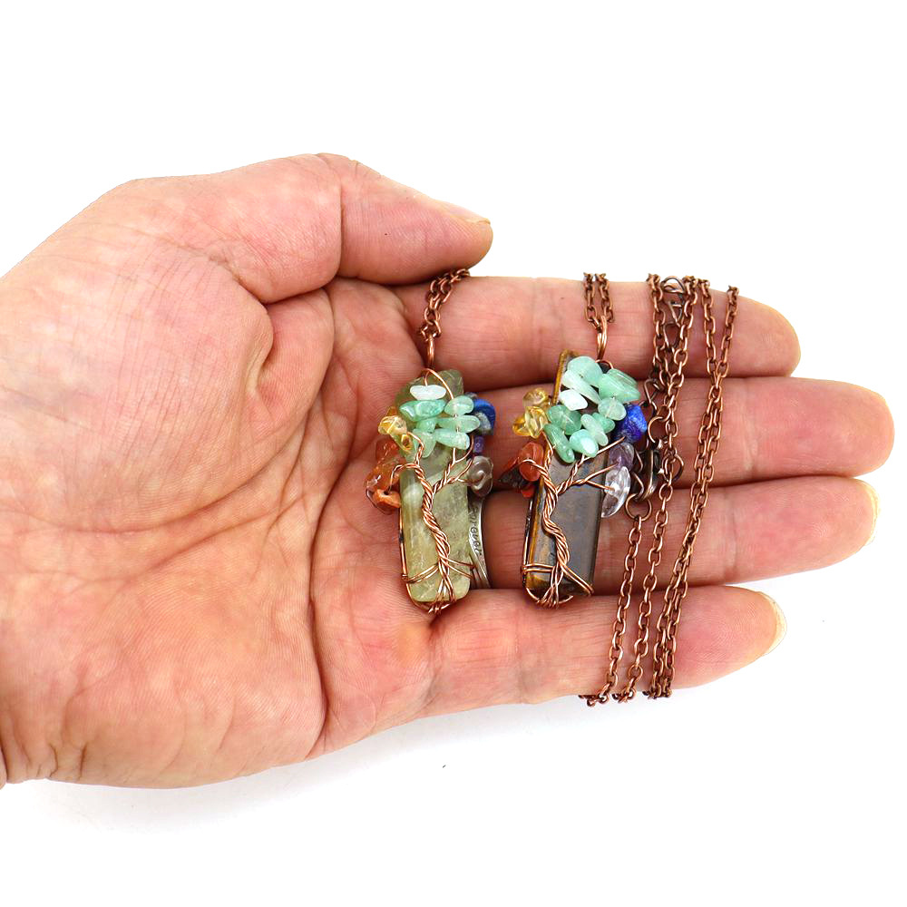 直播热卖天然石不规则水晶条紫晶生命树碎石吊坠项链N672