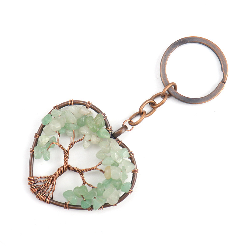 亚马逊复古天然碎石水晶爱心生命树钥匙扣心形钥匙链包包挂件K07