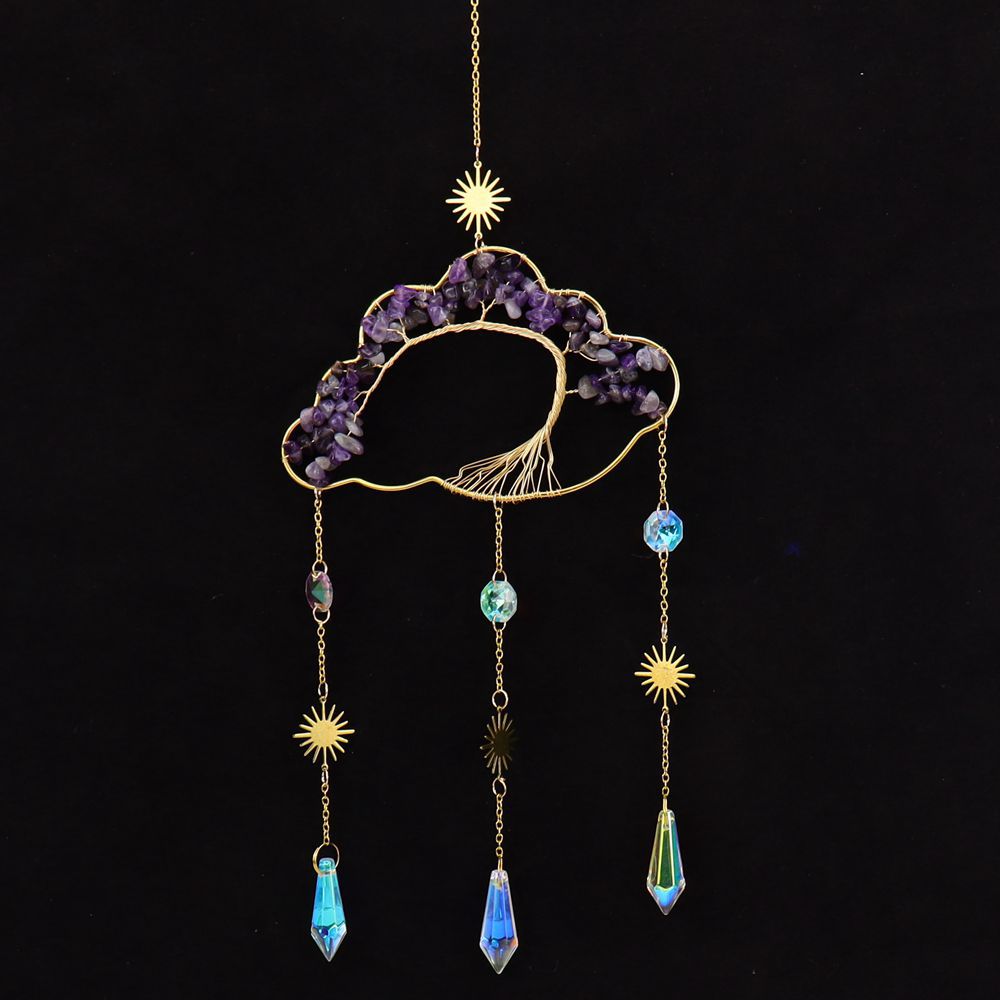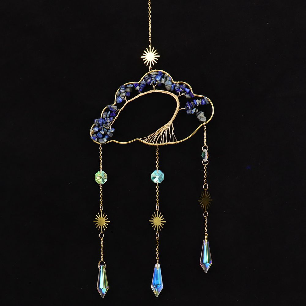 手工绕线天然水晶碎石云彩云朵生命树太阳捕手挂饰风铃装饰T27