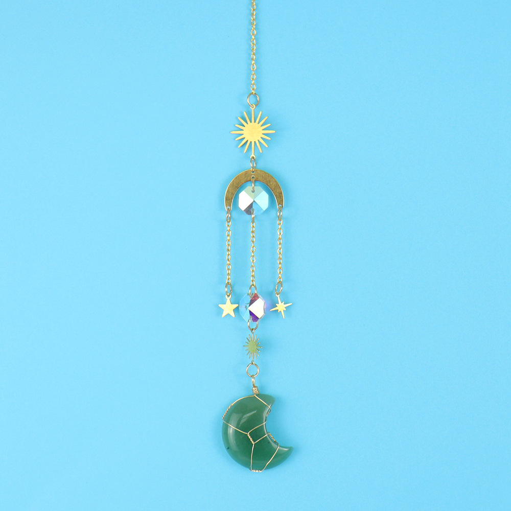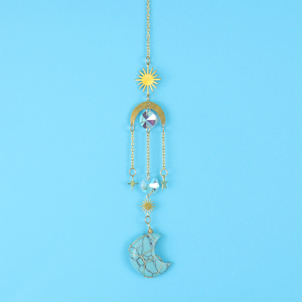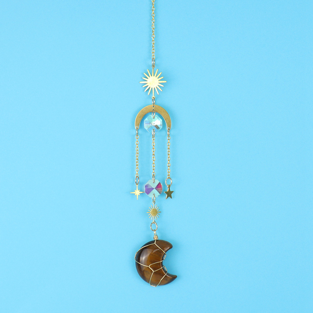 太阳捕手水晶月亮缠绕吊坠灯饰挂件花园水晶配件T40