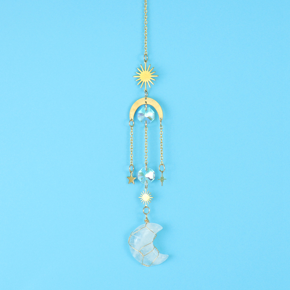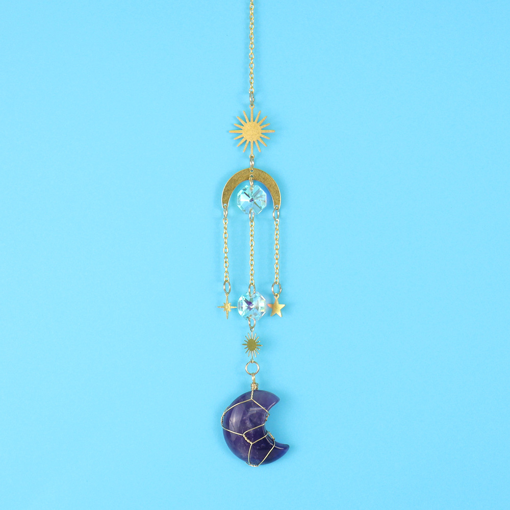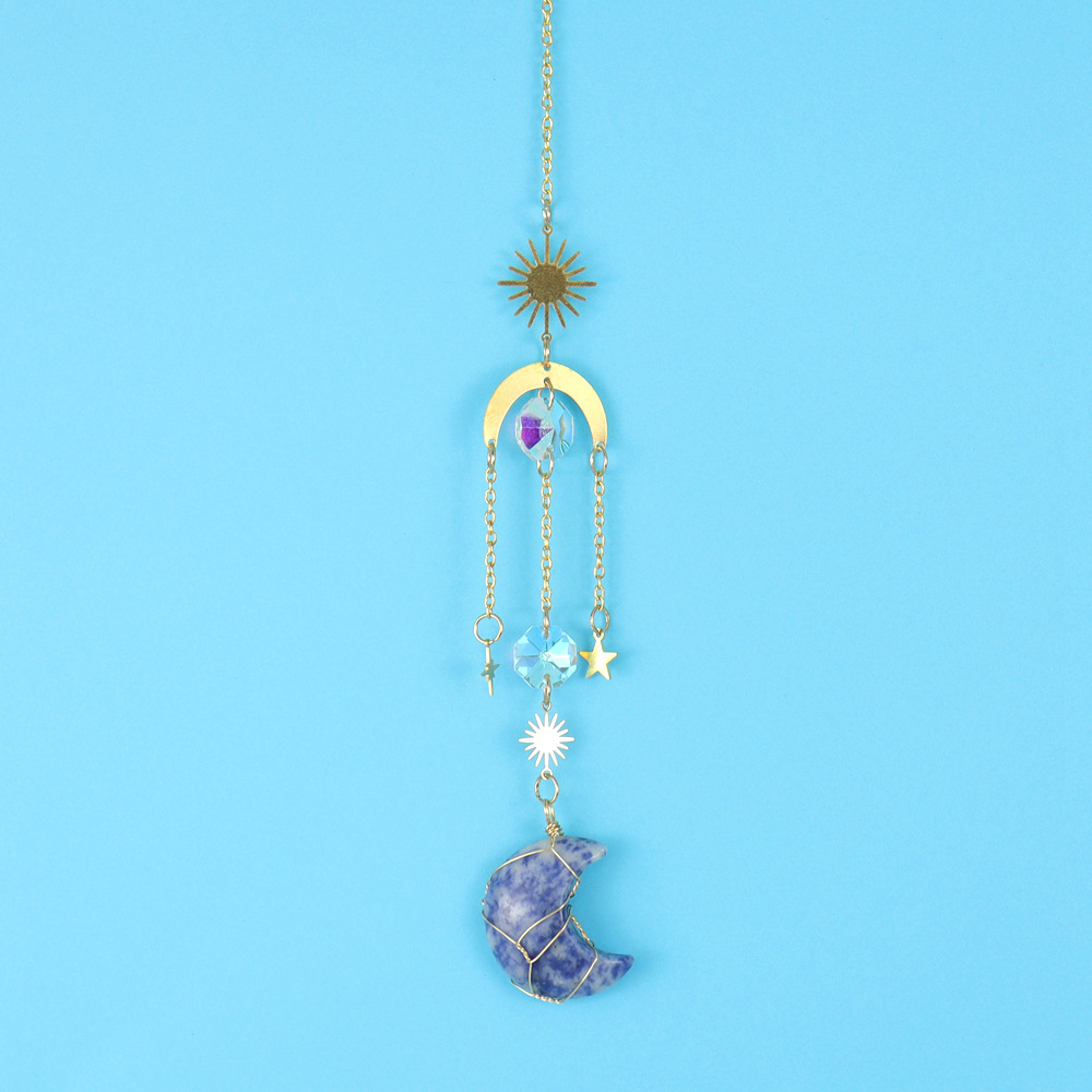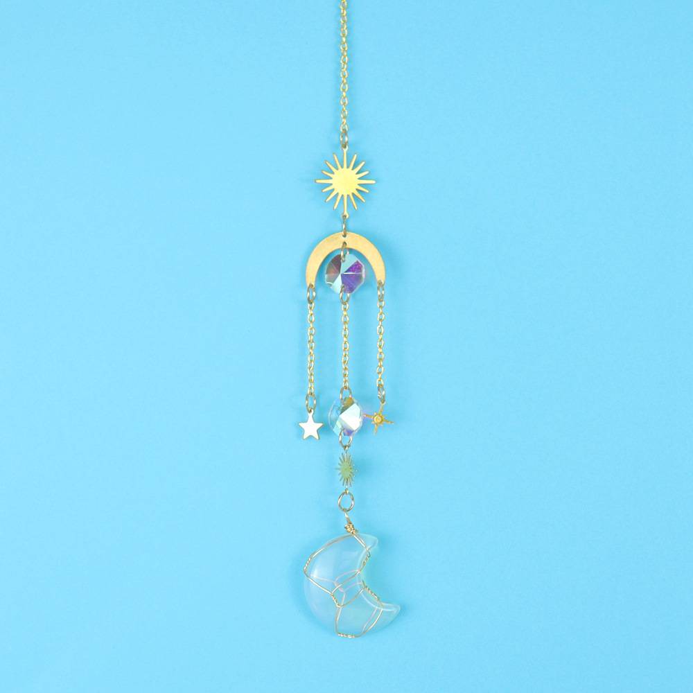 太阳捕手水晶月亮缠绕吊坠灯饰挂件花园水晶配件T40