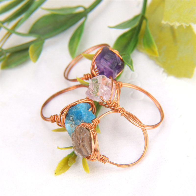 亚马逊货源个性手工编织天然碎石戒指女戒指R04