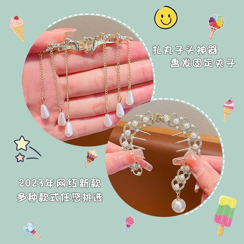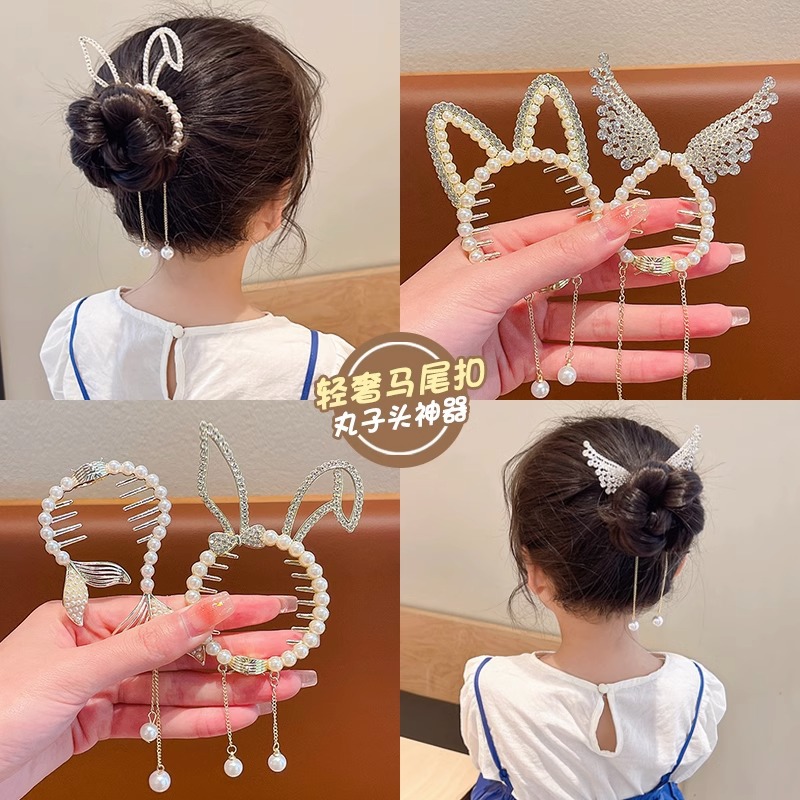 儿童丸子头马尾扣发饰女童丸子头时尚流苏发卡子女孩轻奢百搭头饰