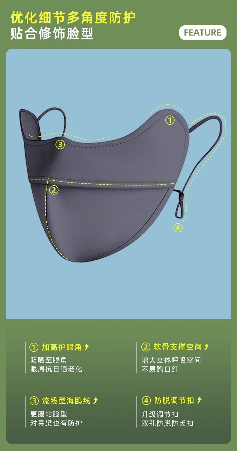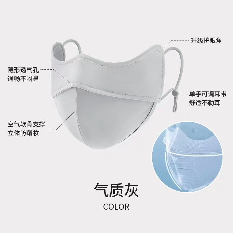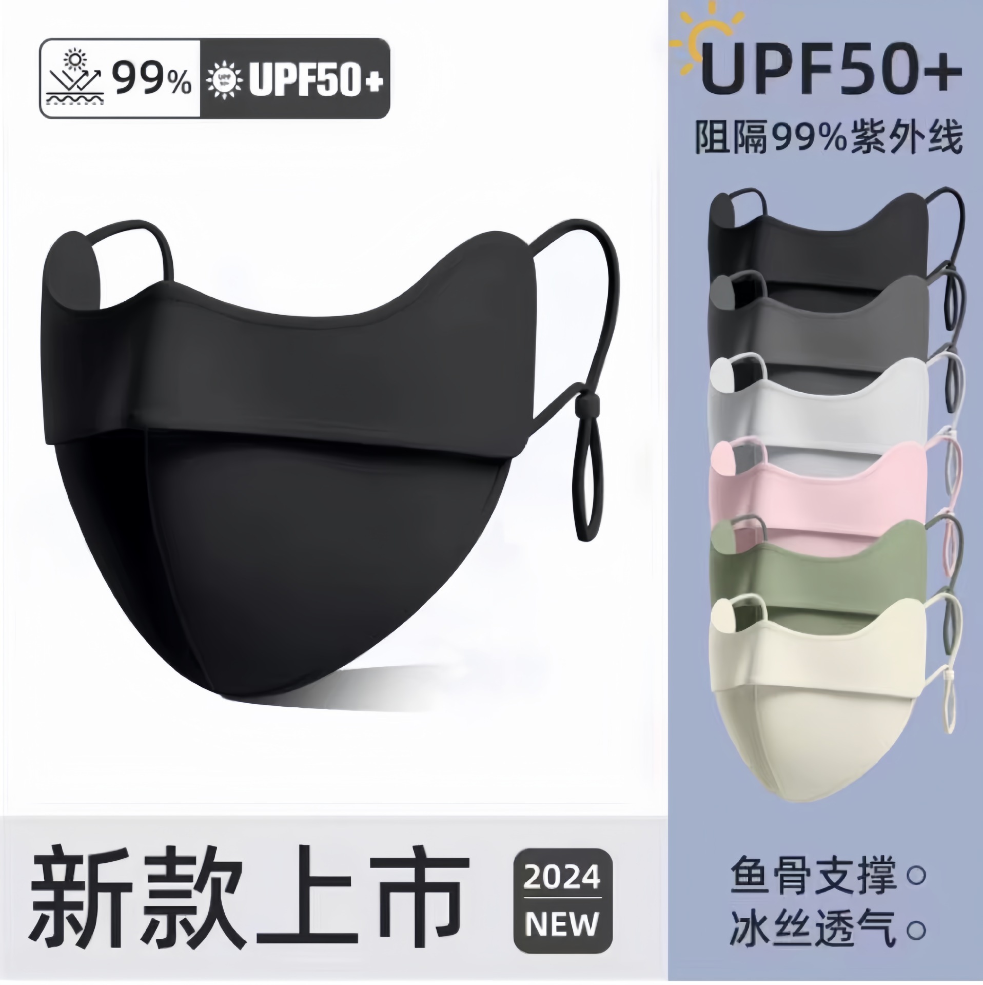 新款夏季5D鱼骨冰丝防晒口罩女立体男防紫外线全脸遮阳防晒面罩