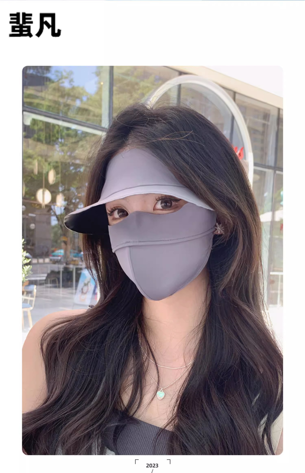 2024夏季防晒面罩带帽檐冰丝防紫外线脸罩遮全脸透气口罩帽子骑行
