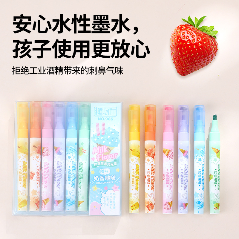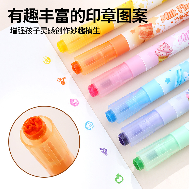 印章奶油果香果味荧光笔创意彩色涂鸦手账笔学生划重点diy记号笔