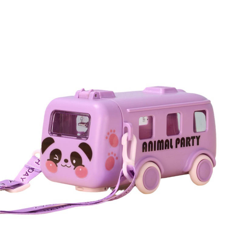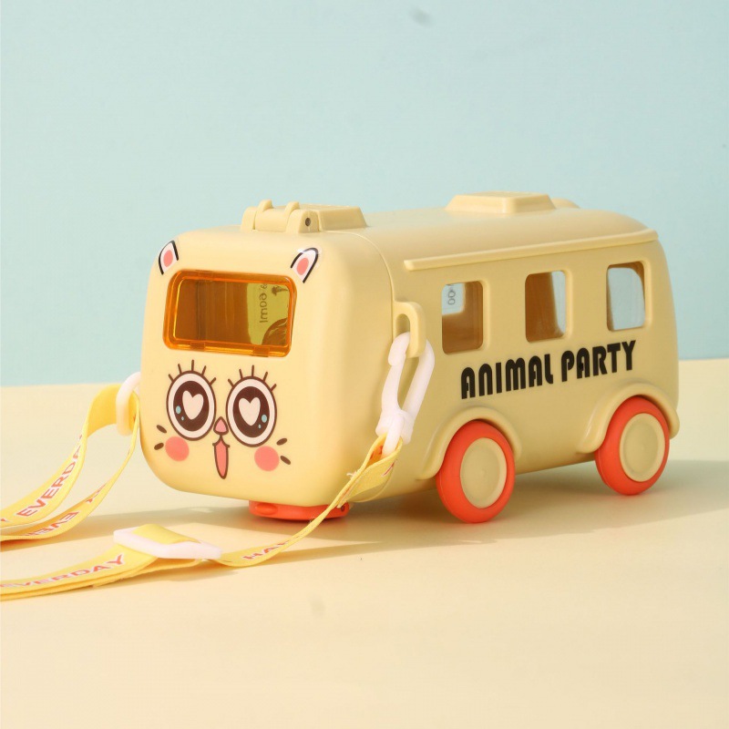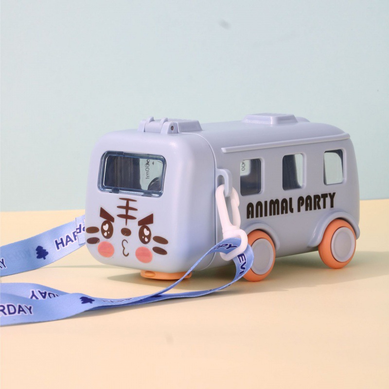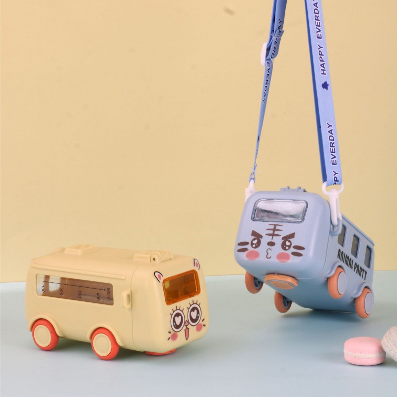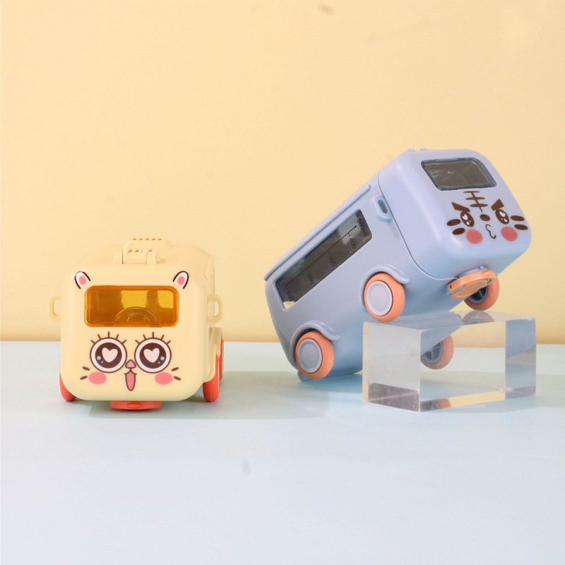 新款儿童宝宝巴士小汽车吸管创意塑料便携户外弹跳盖网红水杯