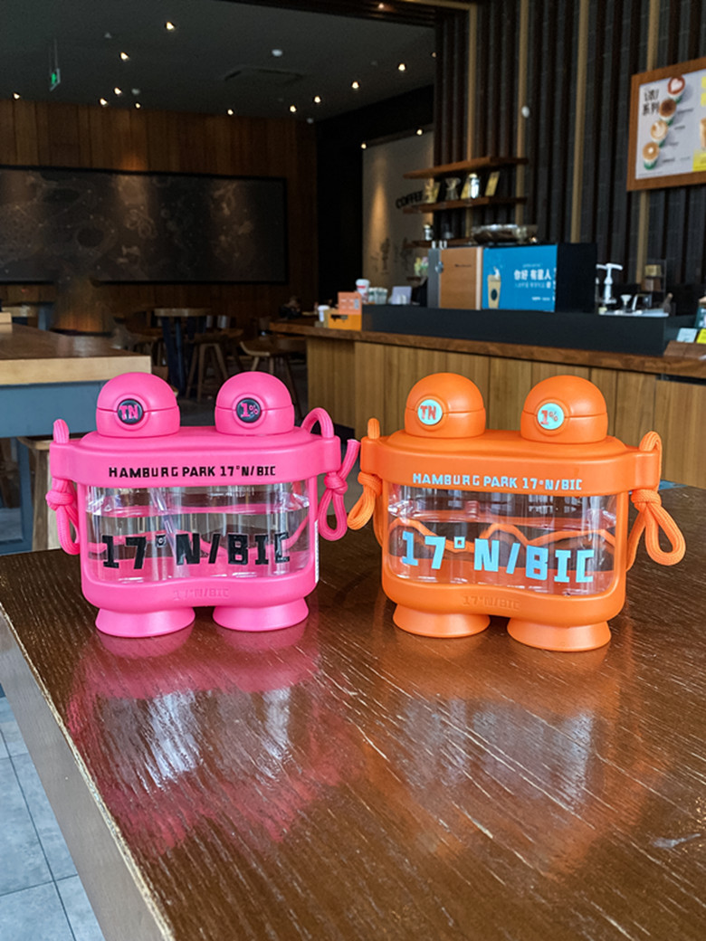 新款儿童水杯显眼包卡通吸管杯可爱高颜值大容量户外运动双仓水壶