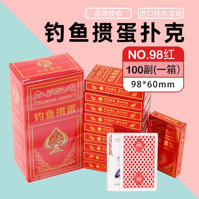 钓鱼掼蛋专用扑克牌高颜值比赛经典纸牌98红蓝高档加厚黑芯纸10副