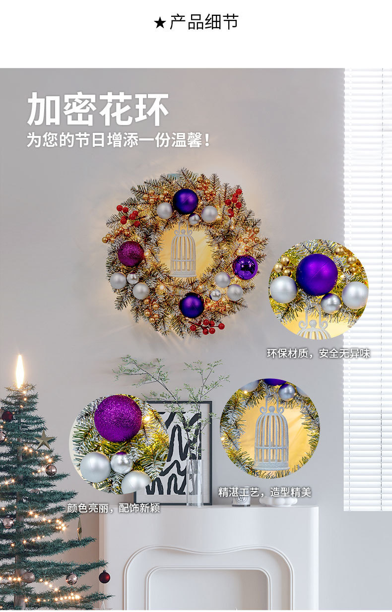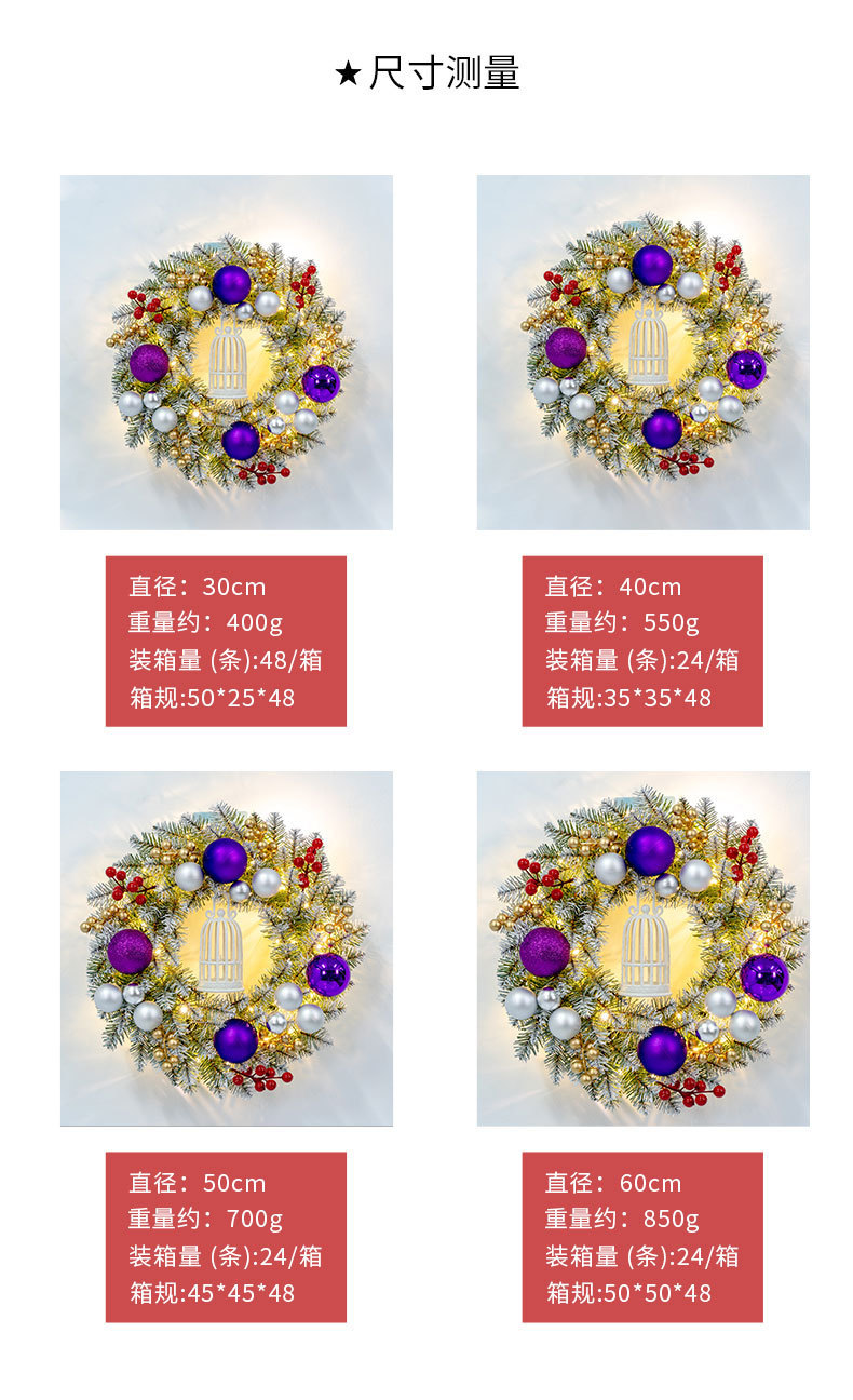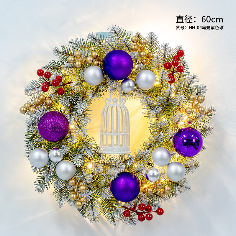 2024新款紫色鸟笼装饰花环30/40/50/60cm圣诞节装饰花环门挂场景