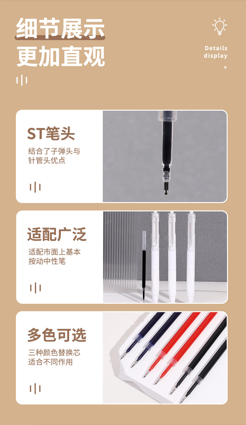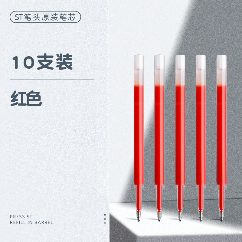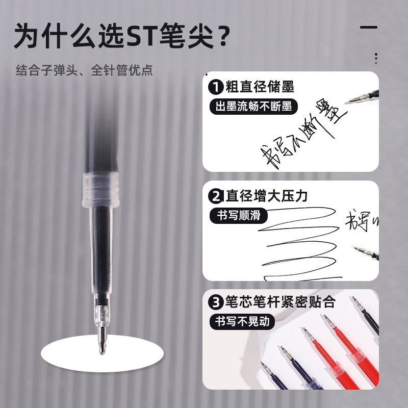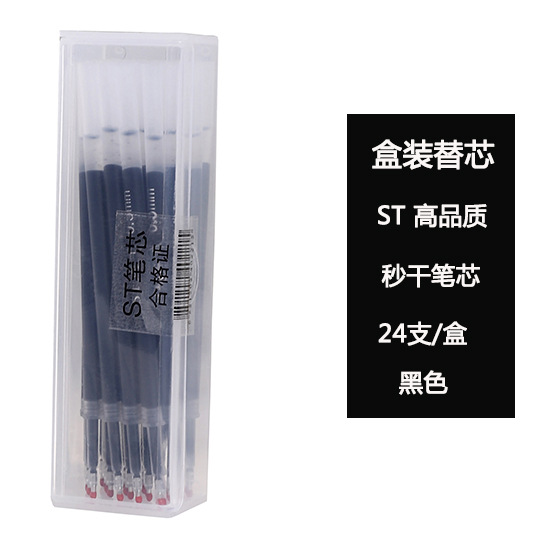 ST头按动笔芯大容量速干中性笔芯黑色0.5mm按动式葫芦头刷题笔芯