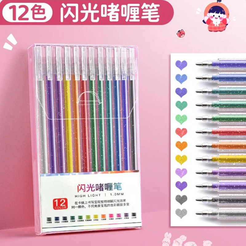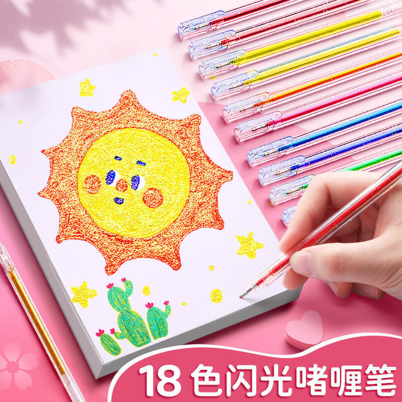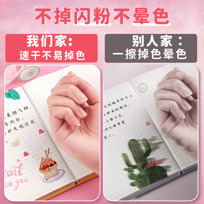 闪光笔啫喱笔荧光标记笔学生用手账闪粉亮晶晶流沙珠光彩色中性笔