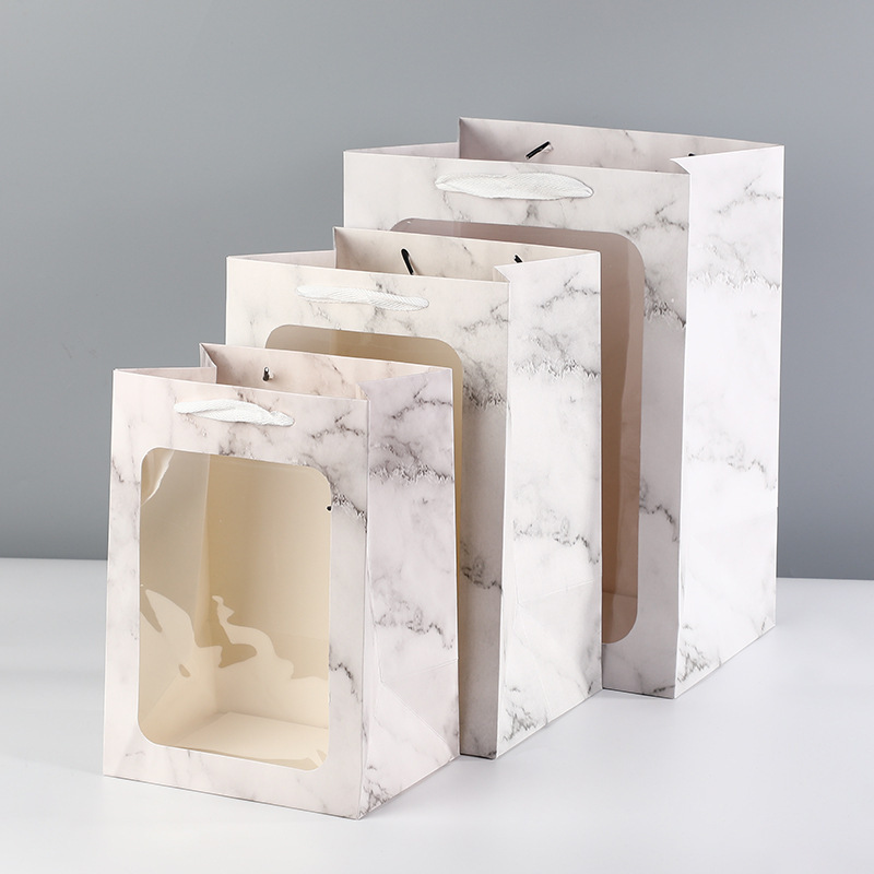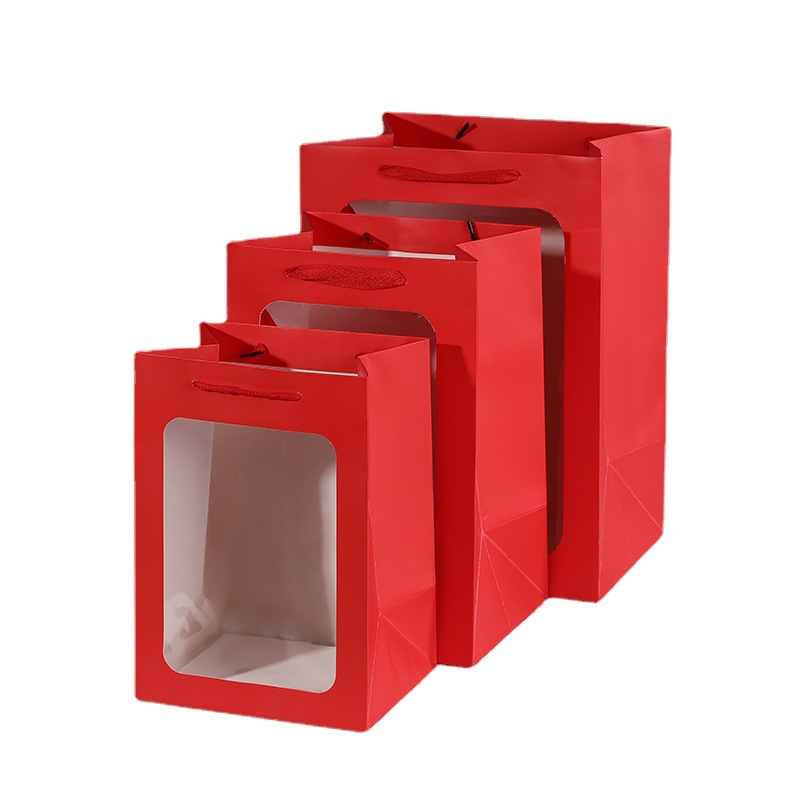 开窗透明礼品袋 情人节会销纸袋鲜花礼物袋包装 礼袋橱窗手提袋