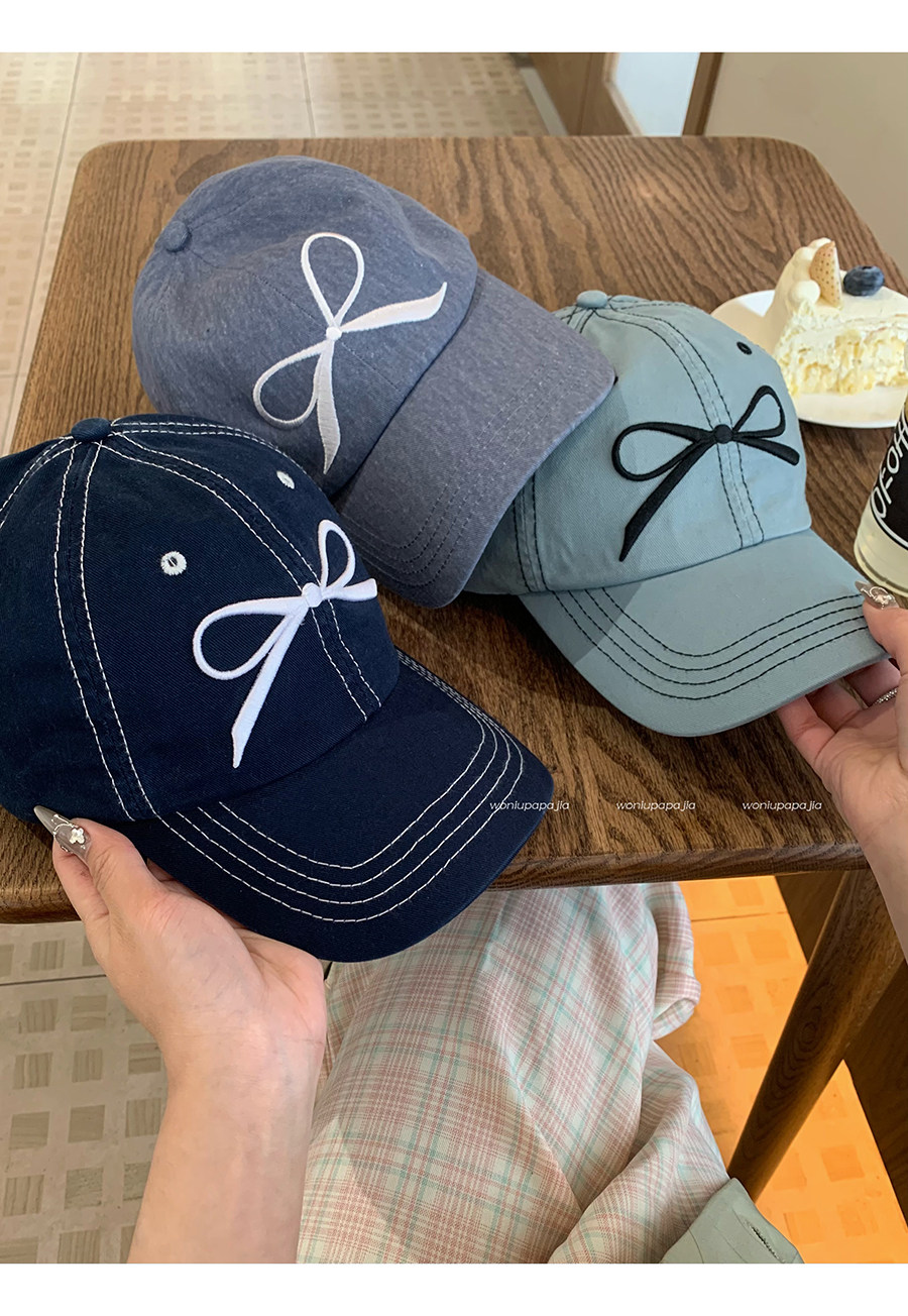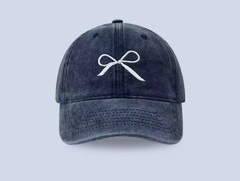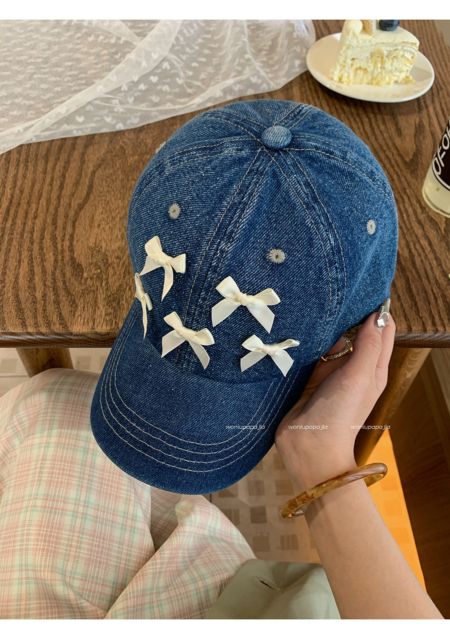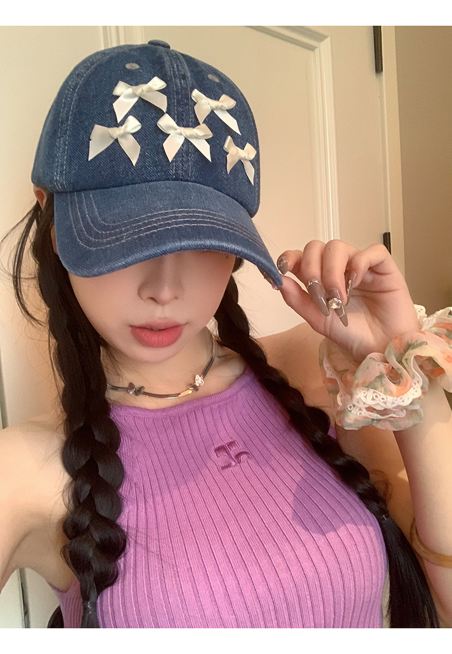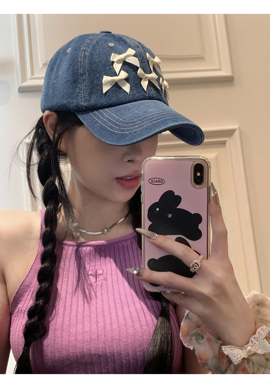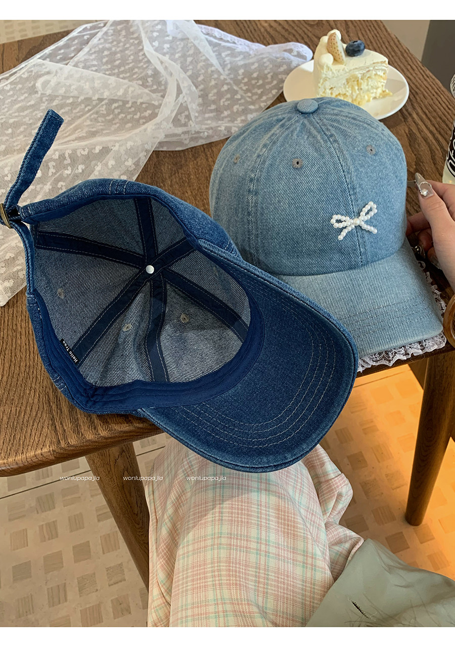 蝴蝶结鸭舌帽女2024新款春夏季韩版百搭ins水洗牛仔防晒棒球帽