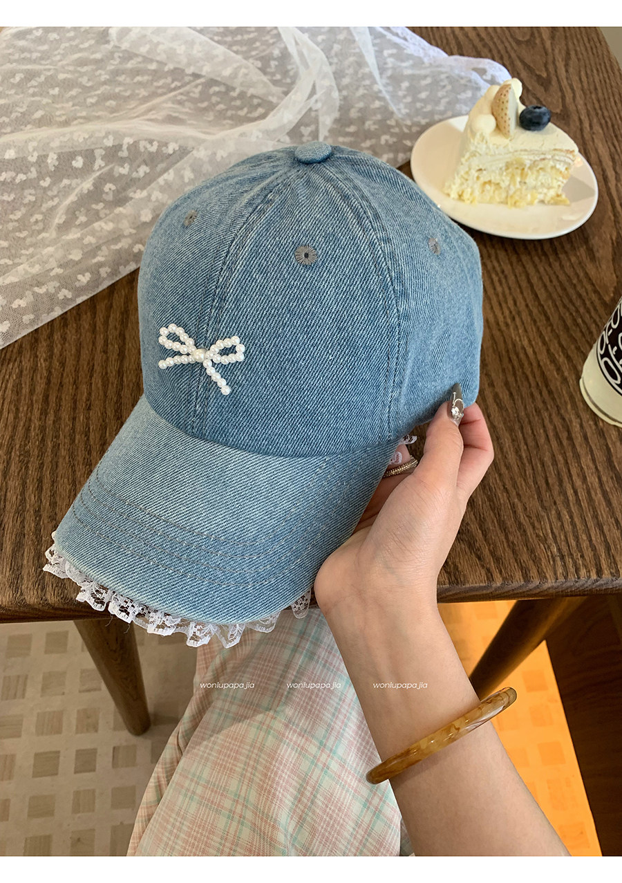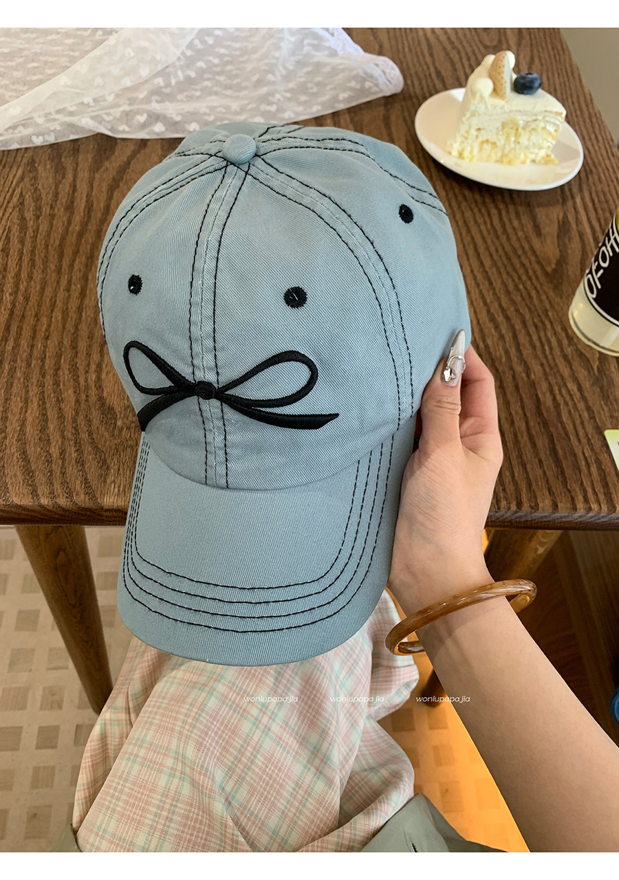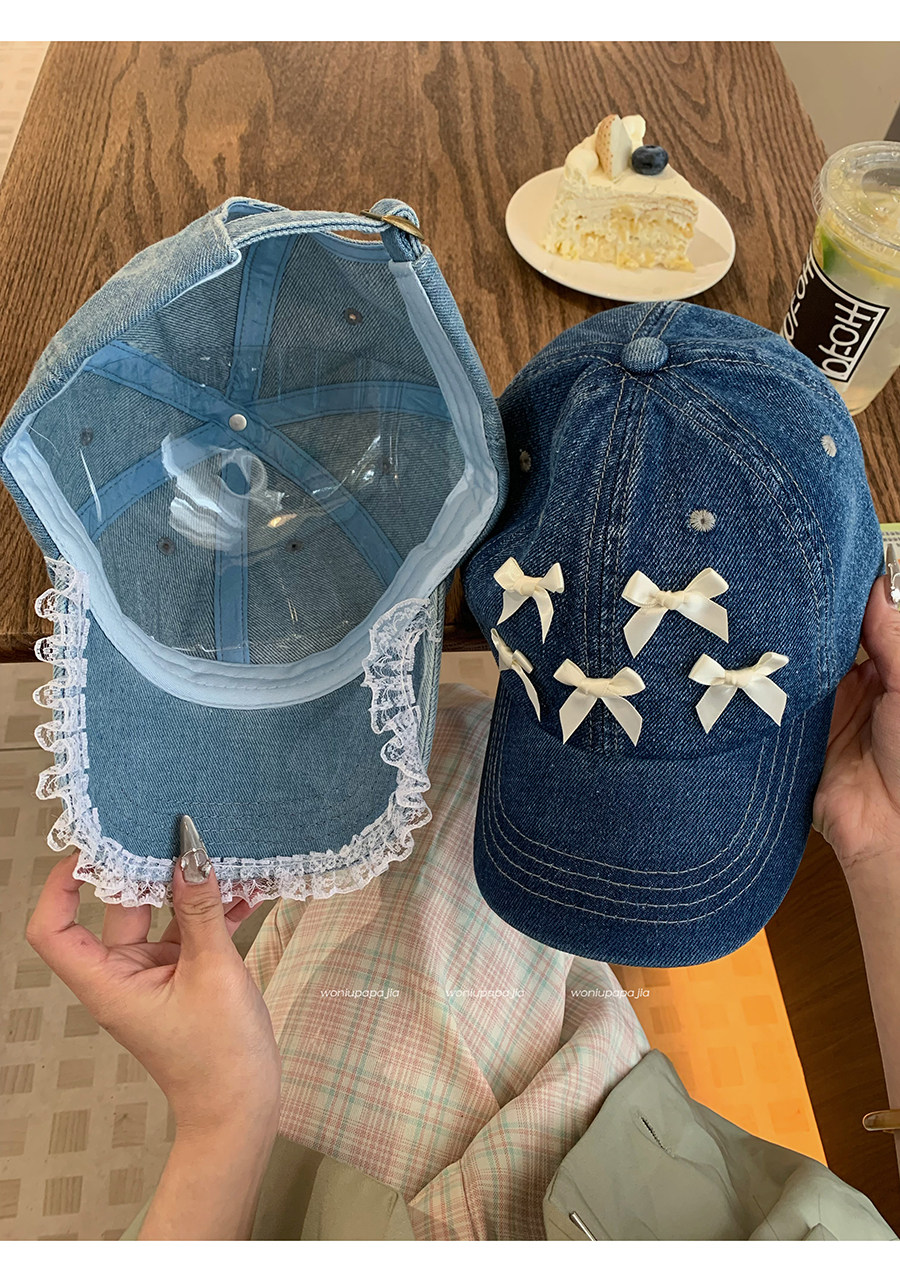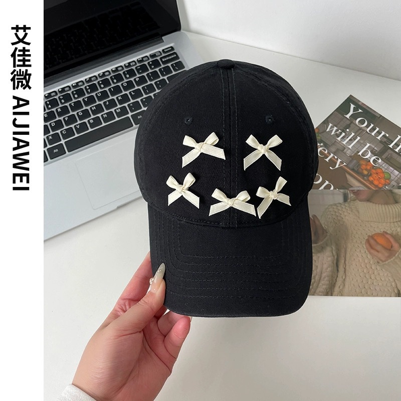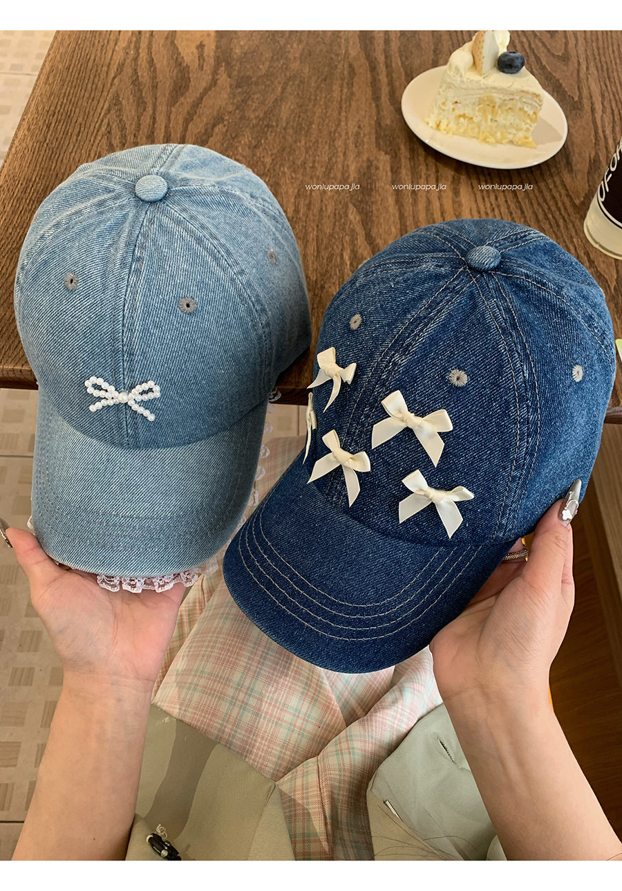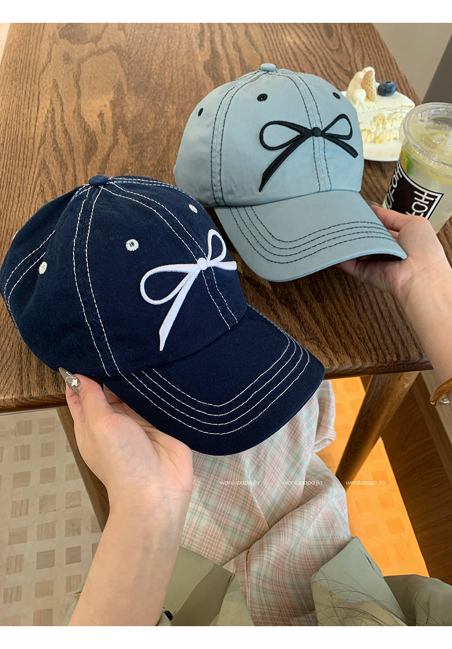 蝴蝶结鸭舌帽女2024新款春夏季韩版百搭ins水洗牛仔防晒棒球帽