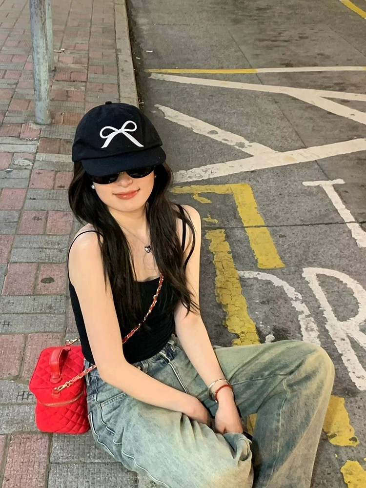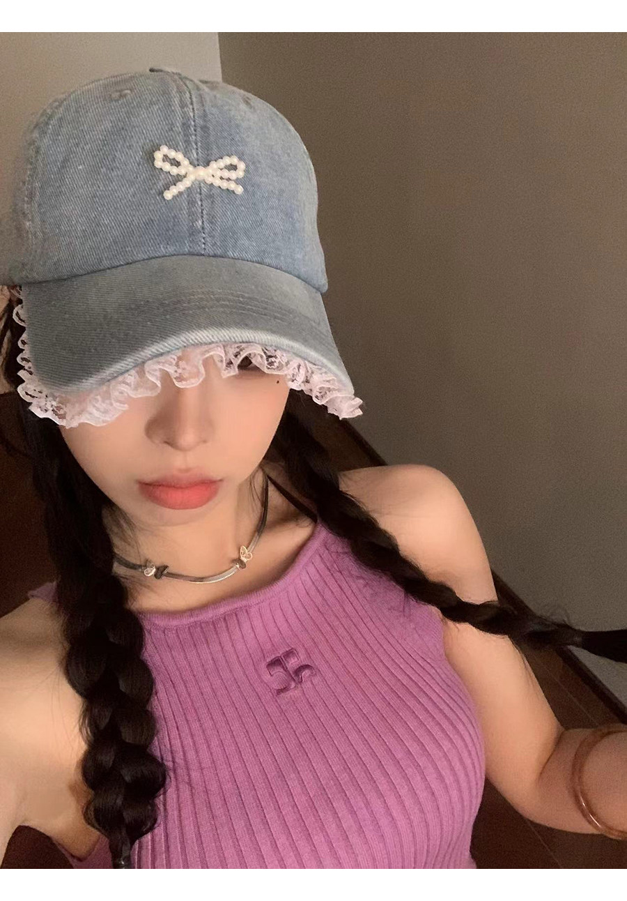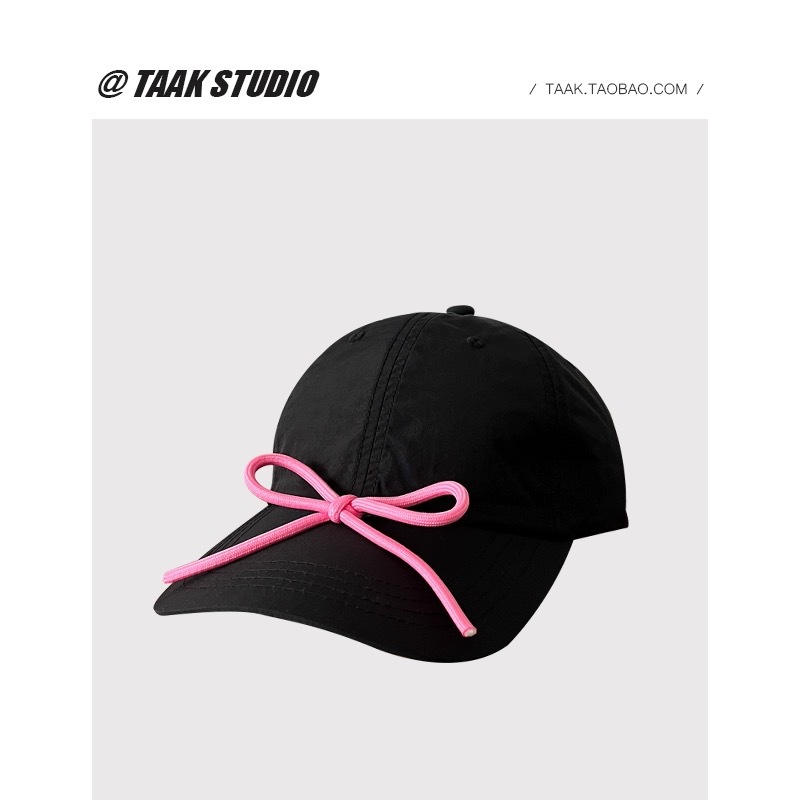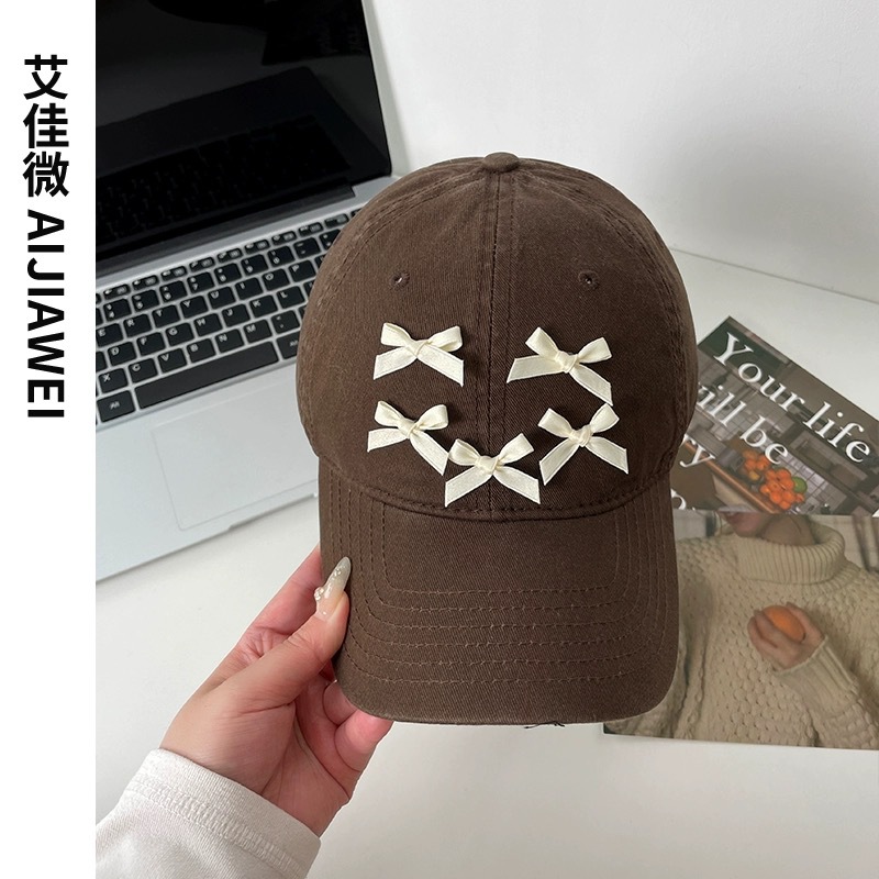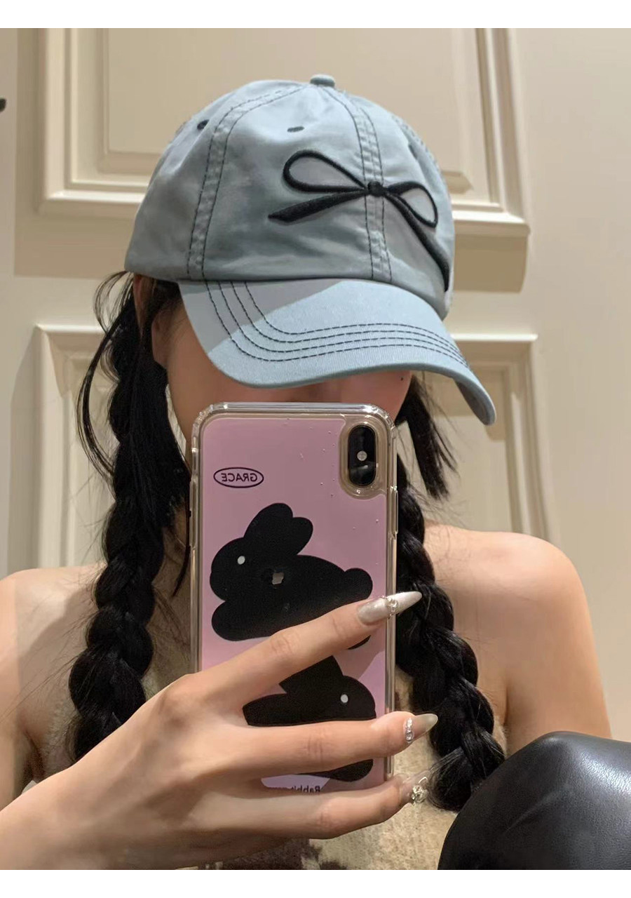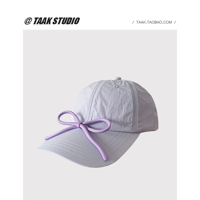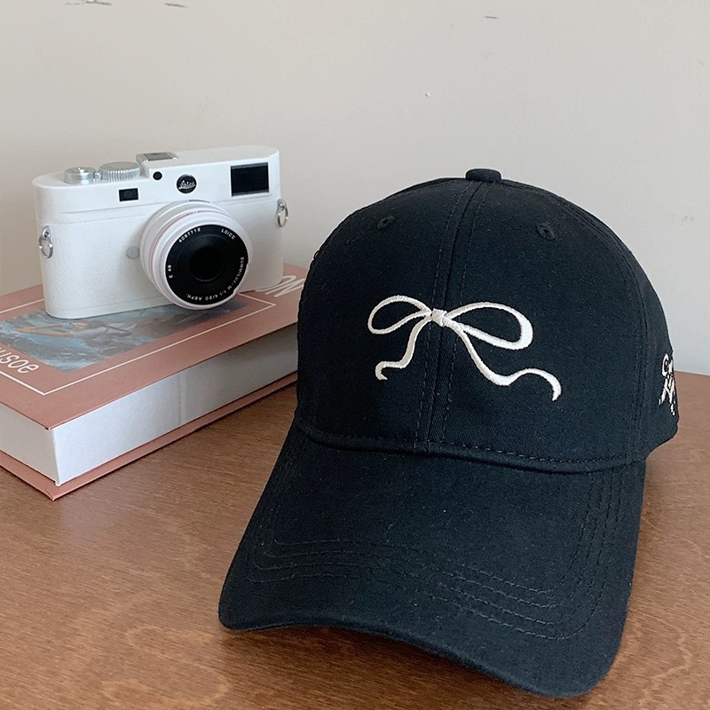 蝴蝶结鸭舌帽女2024新款春夏季韩版百搭ins水洗牛仔防晒棒球帽