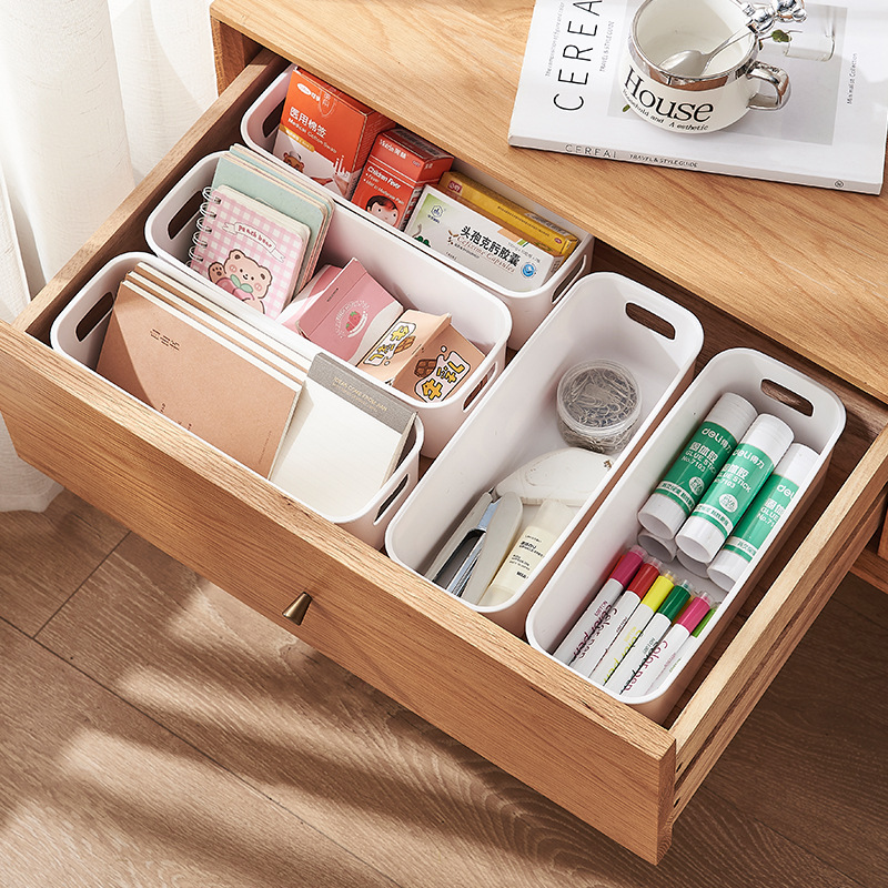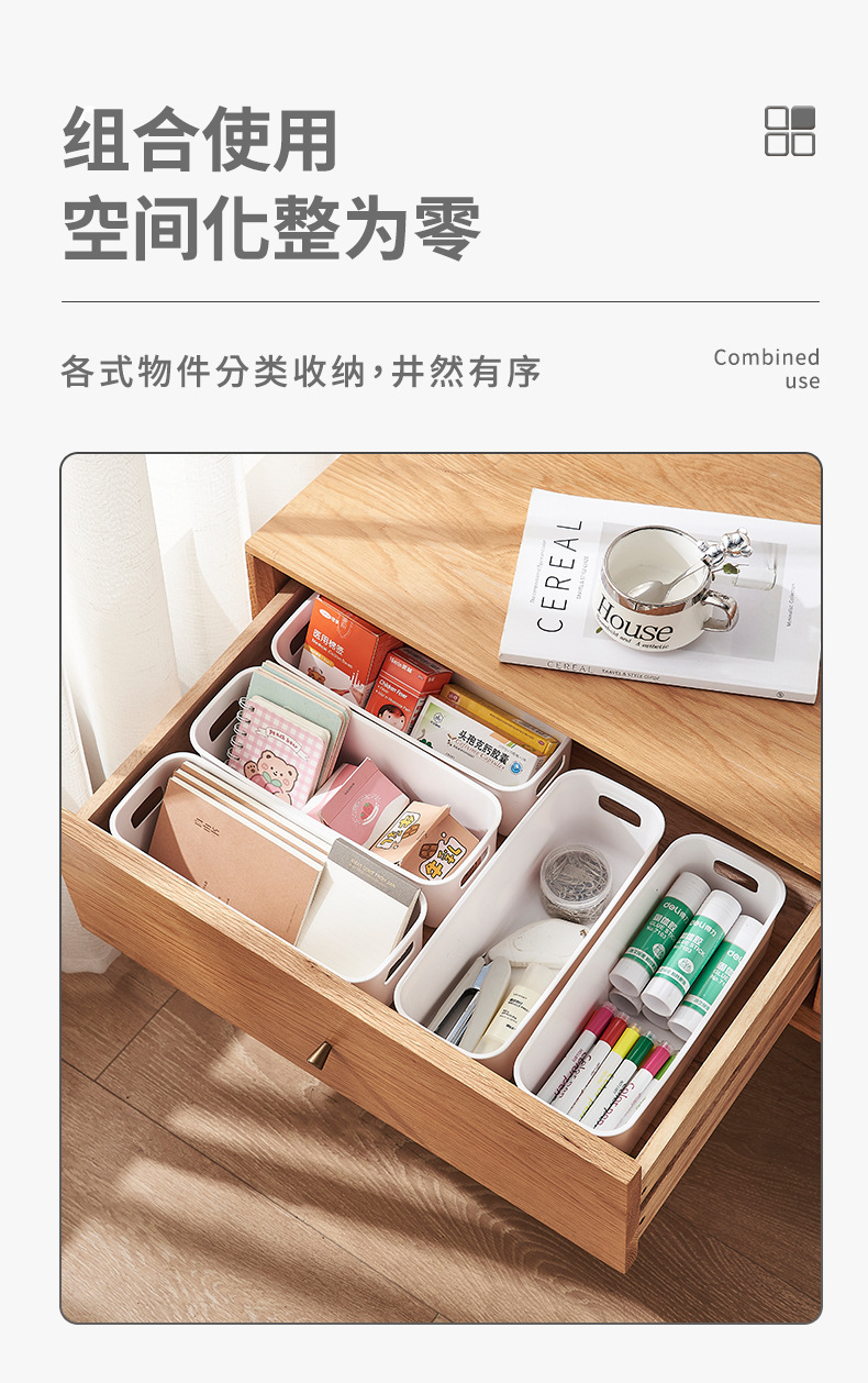 杂物收纳盒桌面抽屉塑料方形收纳盒家用厨房整理化妆品零食储物盒