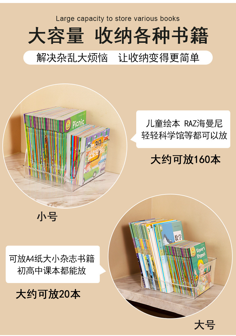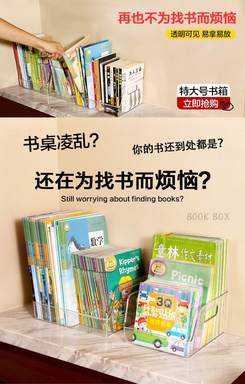 书本收纳盒透明学生儿童绘本书桌整理书籍收纳箱牛津树书架 现货