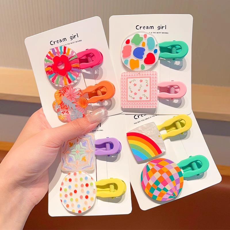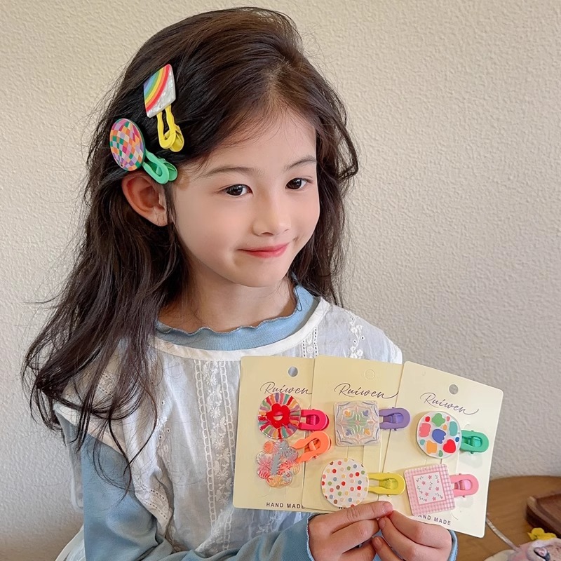 韩版几何发夹彩虹点点女童碎发刘海边夹可爱卡通宝宝发卡头饰批发
