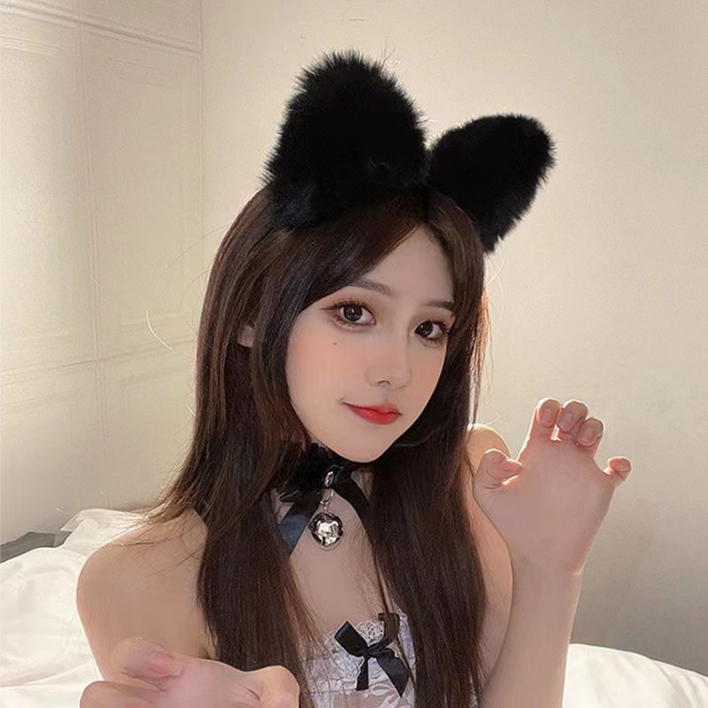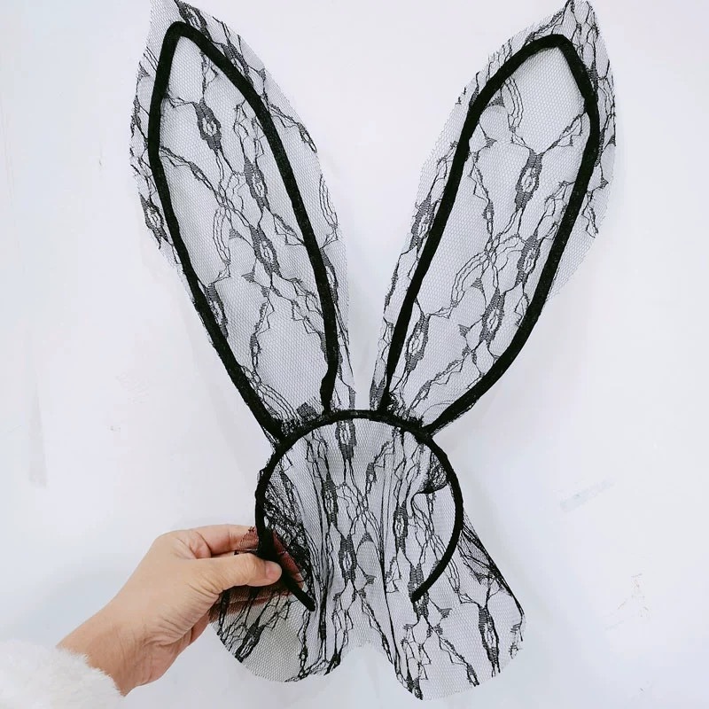 万圣节派对化妆舞会猫女郎头饰黑色蕾丝面纱网红可爱猫兔耳朵发箍