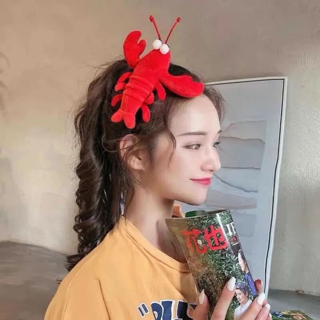 创意小龙虾发箍搞怪龙虾螃蟹发夹可爱卖萌公仔头饰洗脸束发头箍女