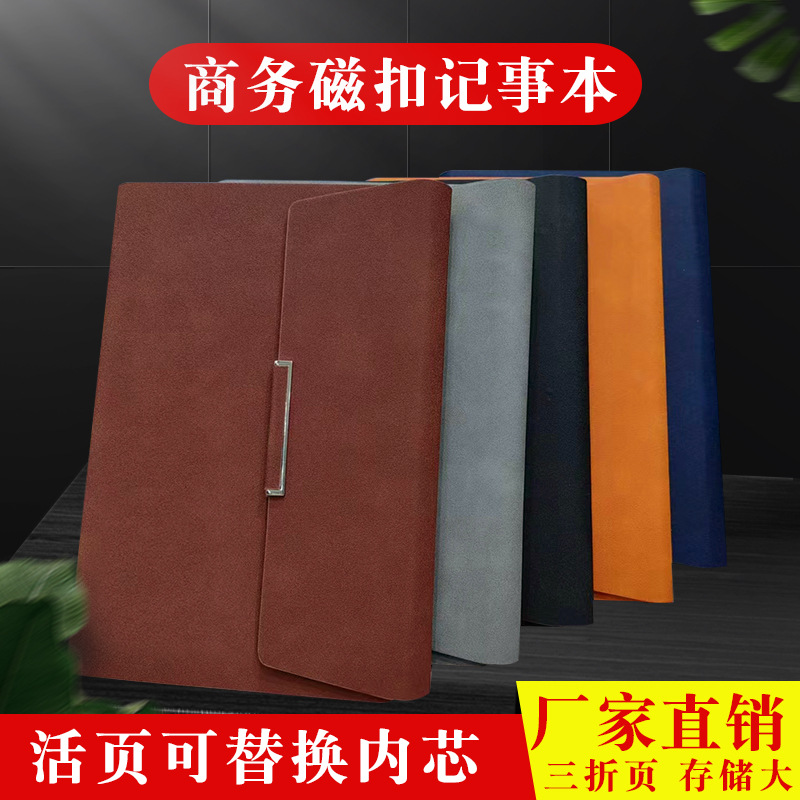 定制磁扣笔记本可插卡创意pu文具本子复古软皮加厚商务记事本可印