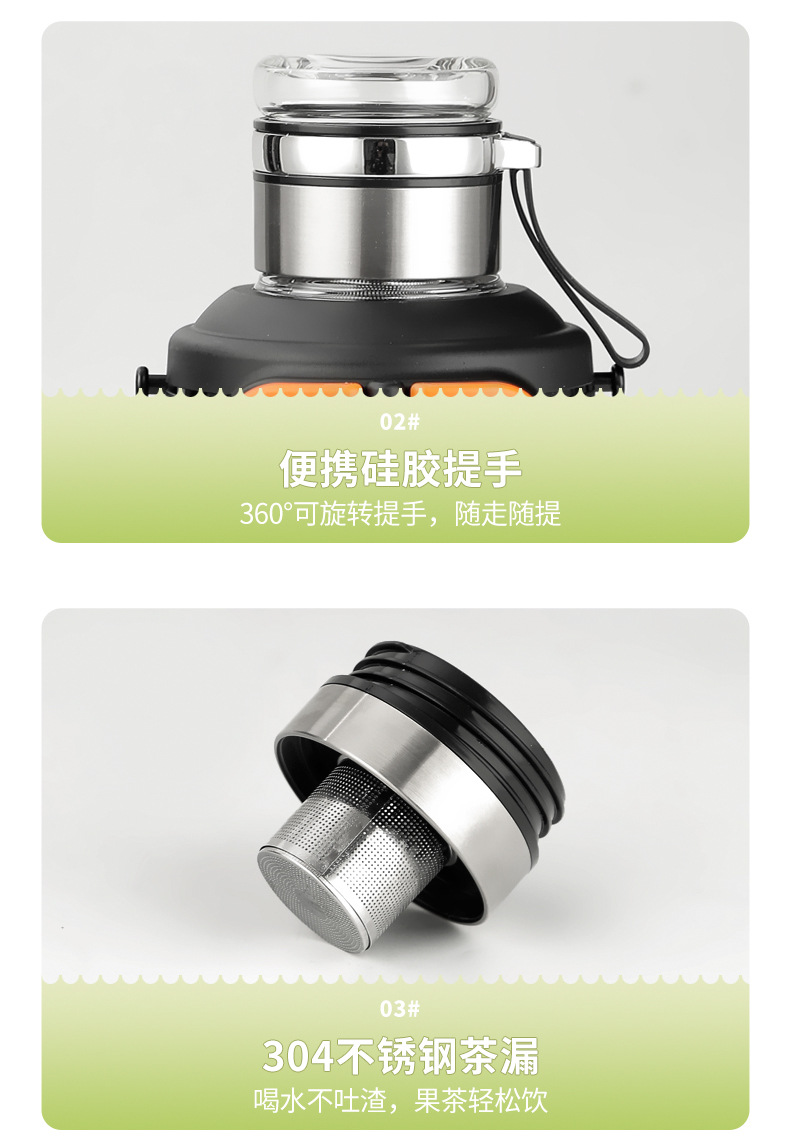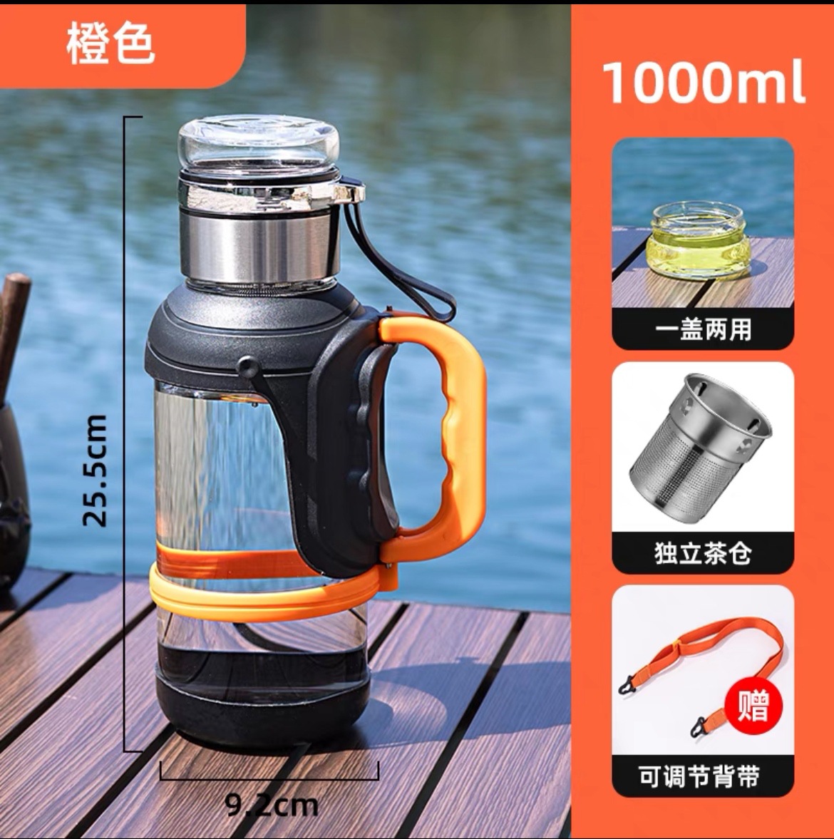 带手柄新款茶水分离玻璃杯男高级感大容量水壶高硼硅水杯