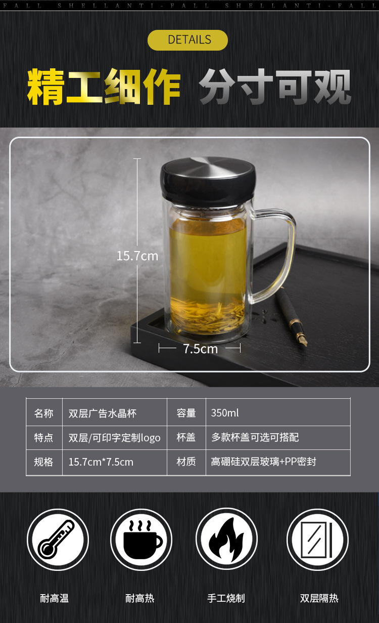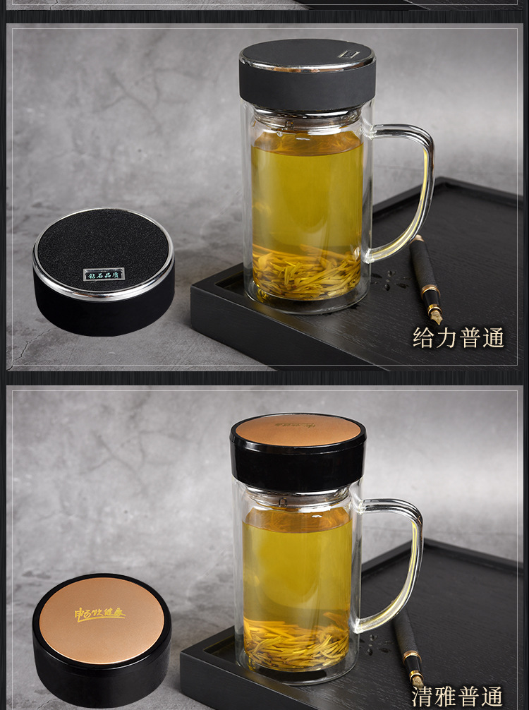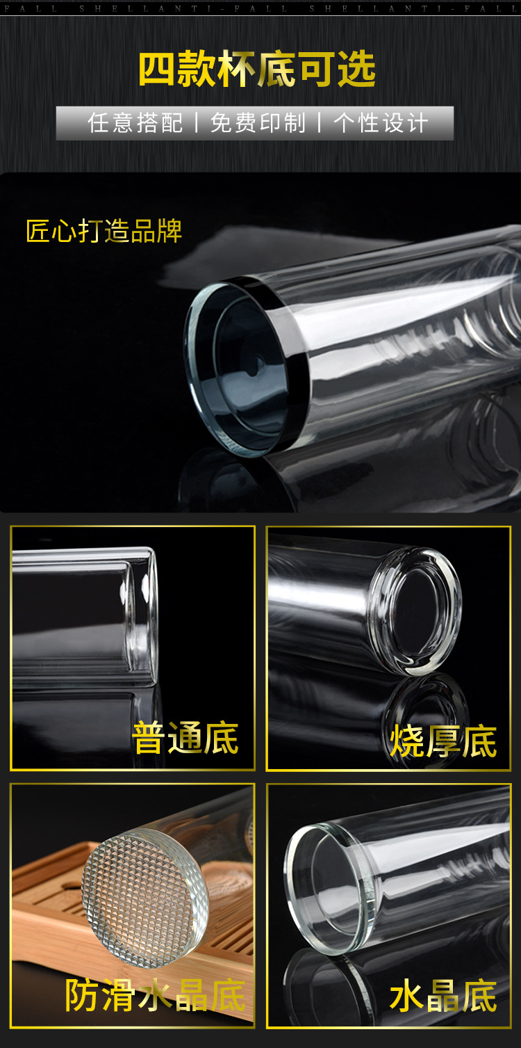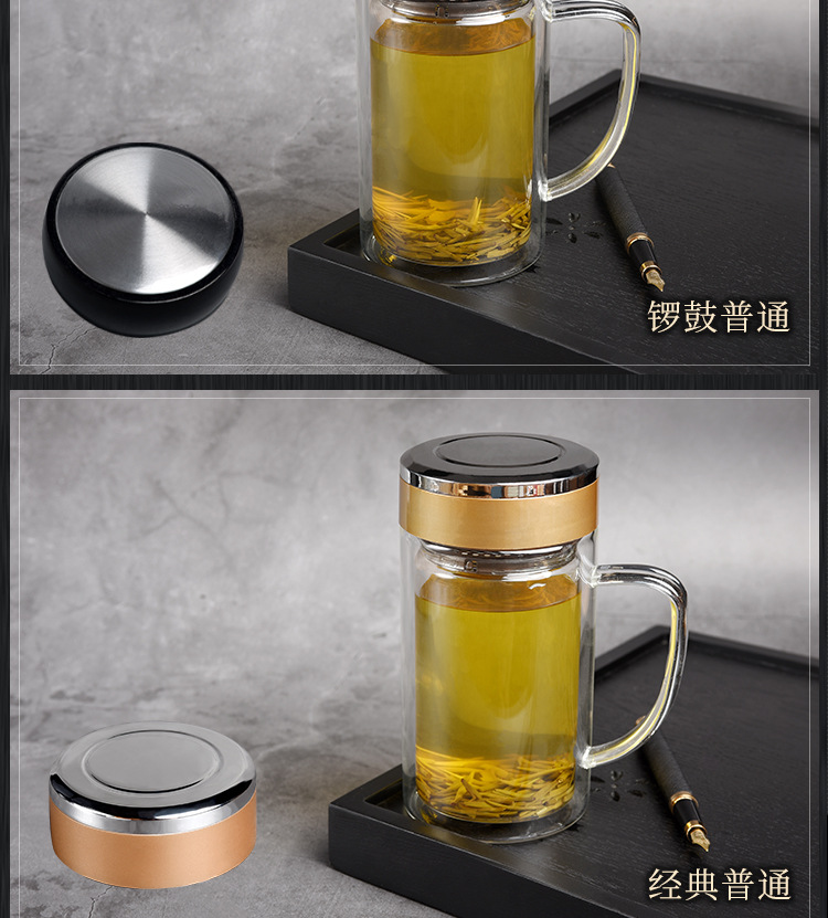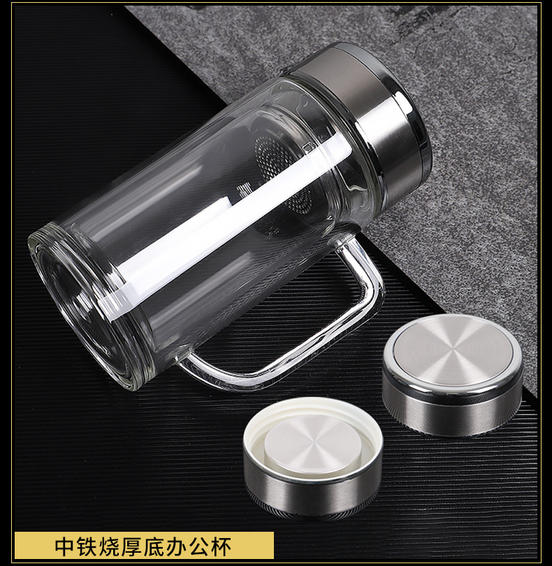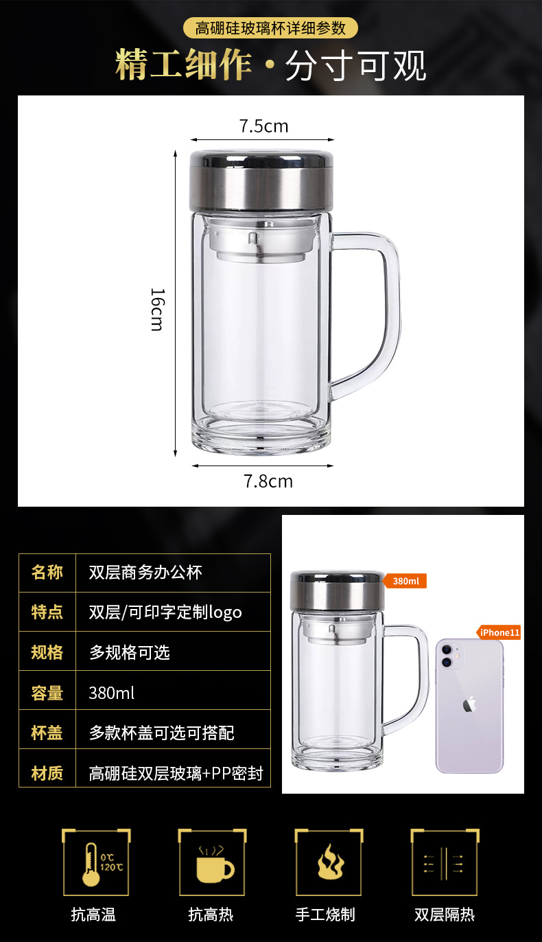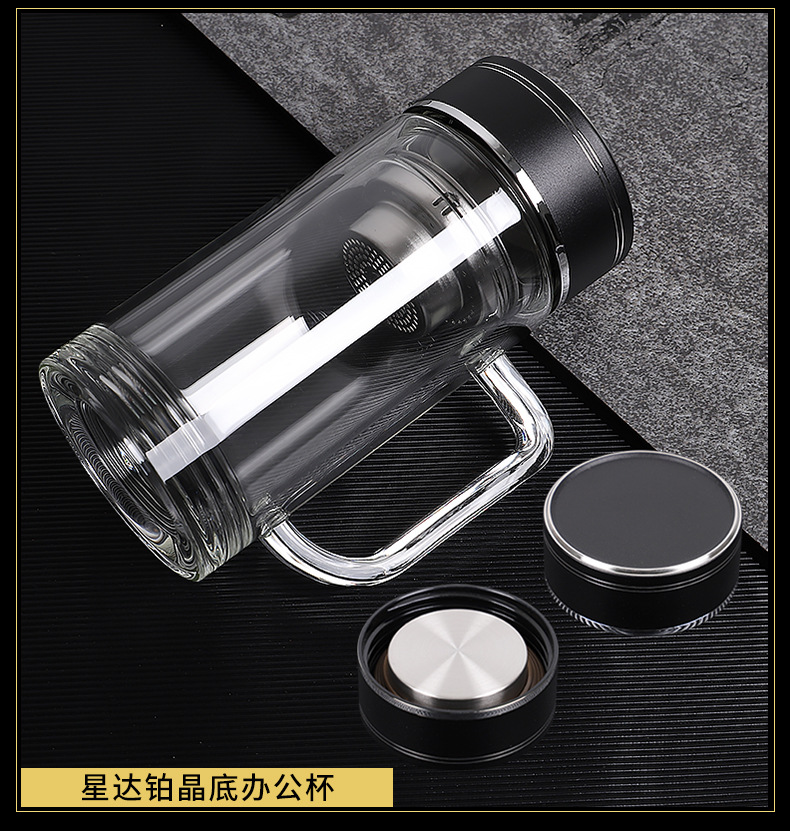 带把手双层玻璃杯定制logo耐高温批发茶杯办公杯广告礼品水杯印字