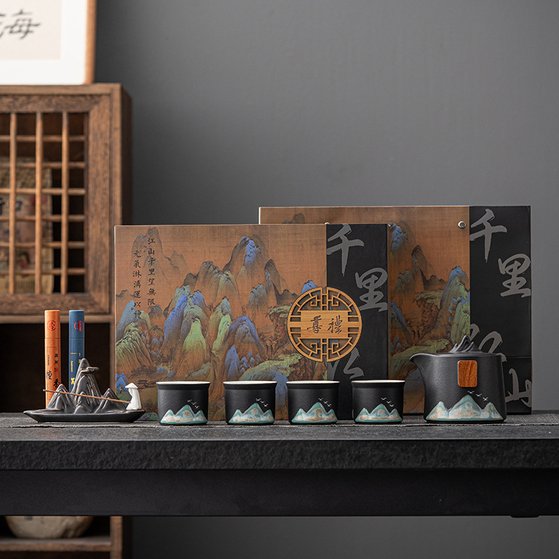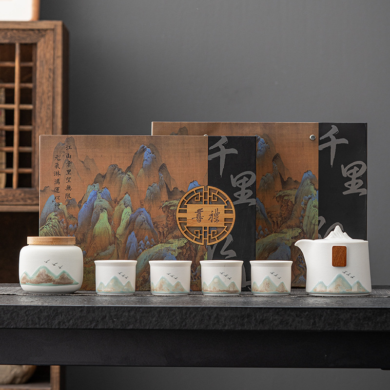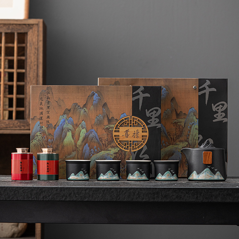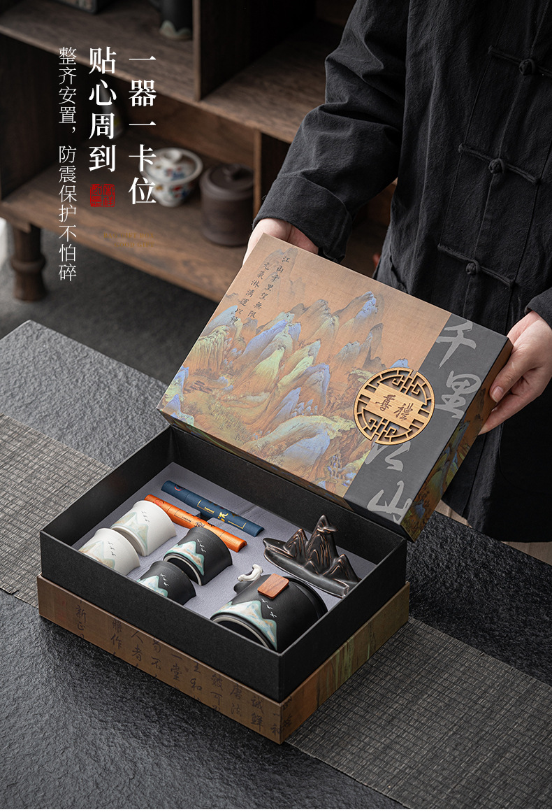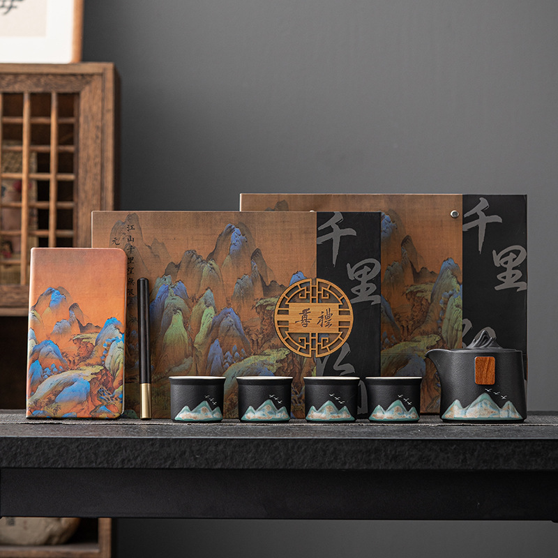 千里江山文创商务礼品茶具套装公司周年庆送客户礼品
